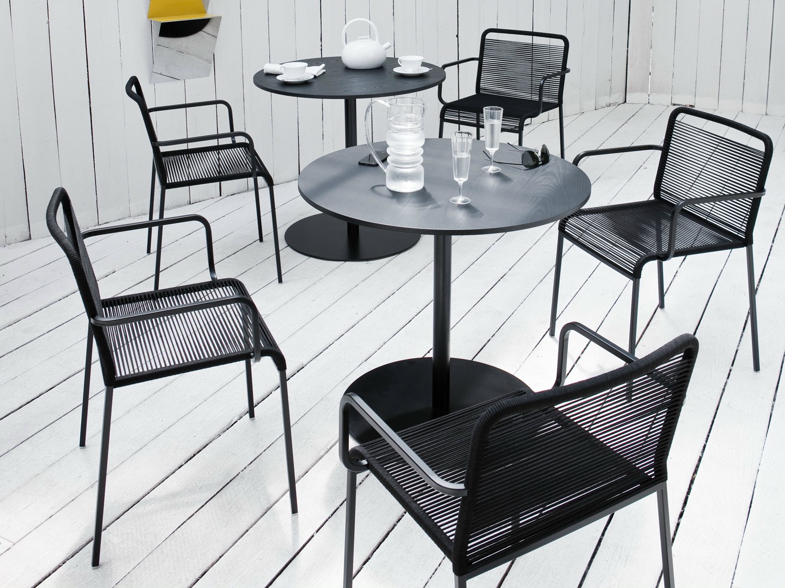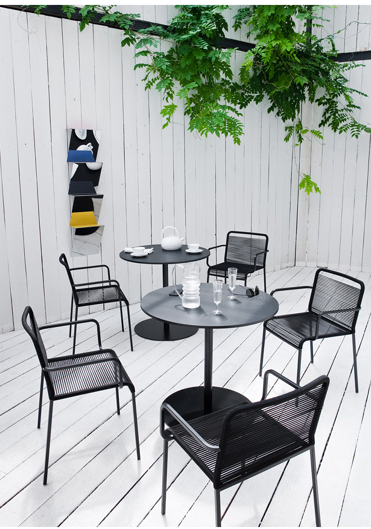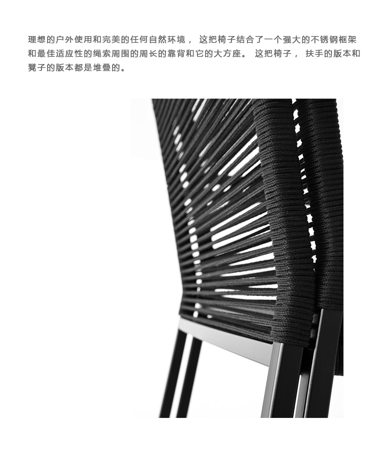 这把椅子不仅让人想起它的名字中空气的轻盈,而且在它的基本设计和它的材料的重量减少。理想的户外使用和完美的任何自然环境,这把椅子结合了一个强大的不锈钢框架与最佳的适应性周围的绳索周围的靠背和它的大方形座椅。这把椅子,带扶手的版本和凳子版本都是堆叠的。在视野开阔的地方,你可以找到ARIA。