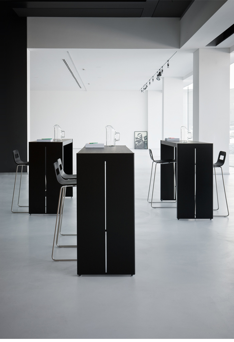 这个高桌子的集合,增加了任何空间的强度和特征,是木材和金属组合的结果。在一条直线上,可以自由地使用单一的或曲折的元素来创建一个系统。侧腿的缝隙由弯曲的金属制成,让人回想起晚礼服的动作和优雅的诱惑。