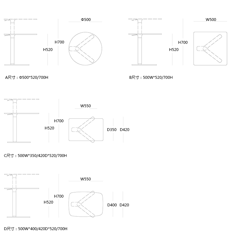 YO 茶几/边几 系列尺寸/示意图