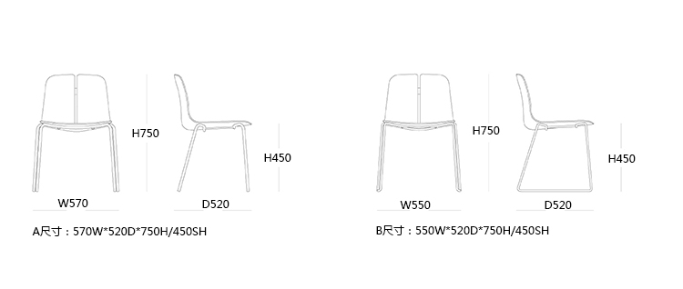 LINK 洽谈椅/餐椅 系列尺寸/示意图