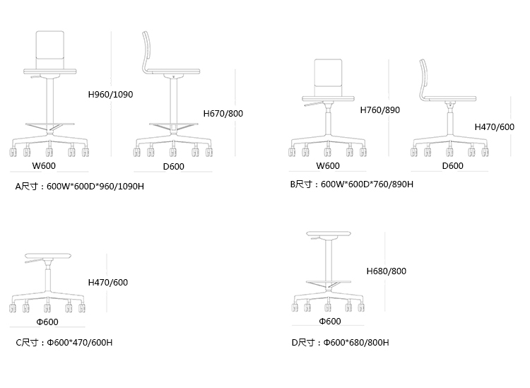 LAB  吧椅/职员椅 系列尺寸/示意图