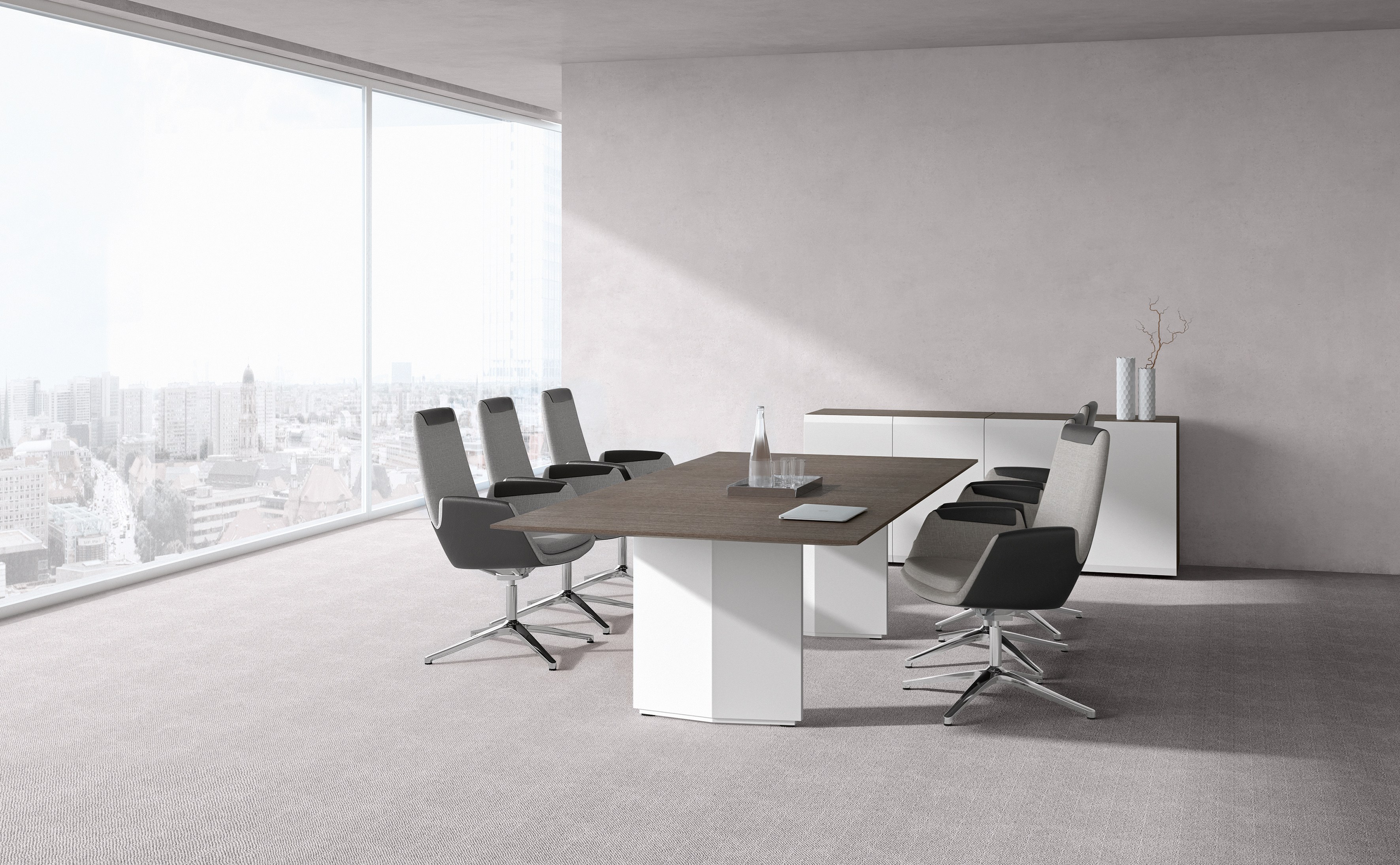 精心设计的工作表面,可调节到不同的高度,其形式在第一眼看上去就不一样了。 不显眼的功能细节连接优雅的外观和出色的做工,提供了绝对的稳定和最大的底部空间。桌面似乎漂浮在基座上, 有各种各样的尺寸,饰面和精致的贴面。电缆和驱动器隐藏在优雅的漆面漆的侧面板后面。匹配的容器和侧板是完美的补充,既增加了功能又增加了气氛。