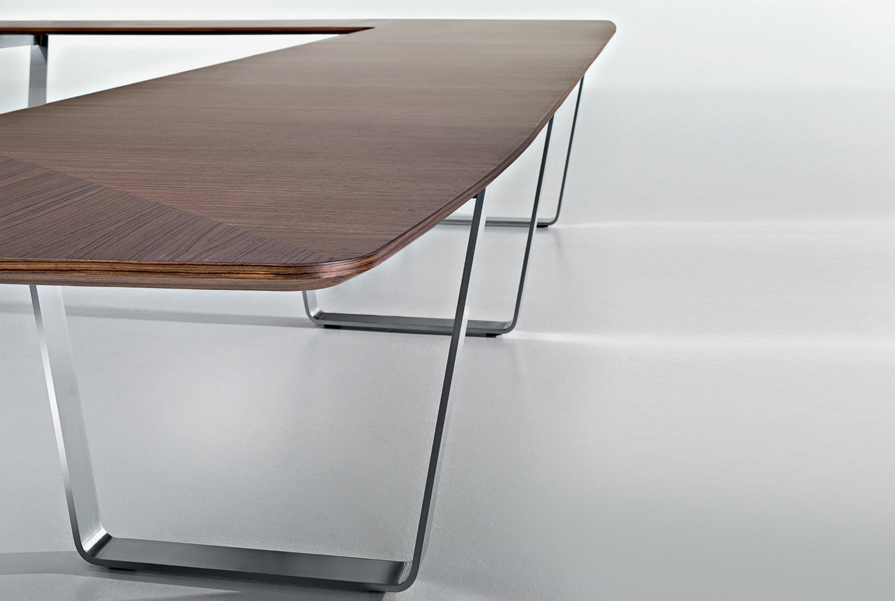 设计师jehs+laub把对德式美学的极致追求融入到设计之中。流畅的桌面木纹拼接、天衣无缝镀铬桌脚处理工艺,让整个产品宛若浑然天成,无懈可击。