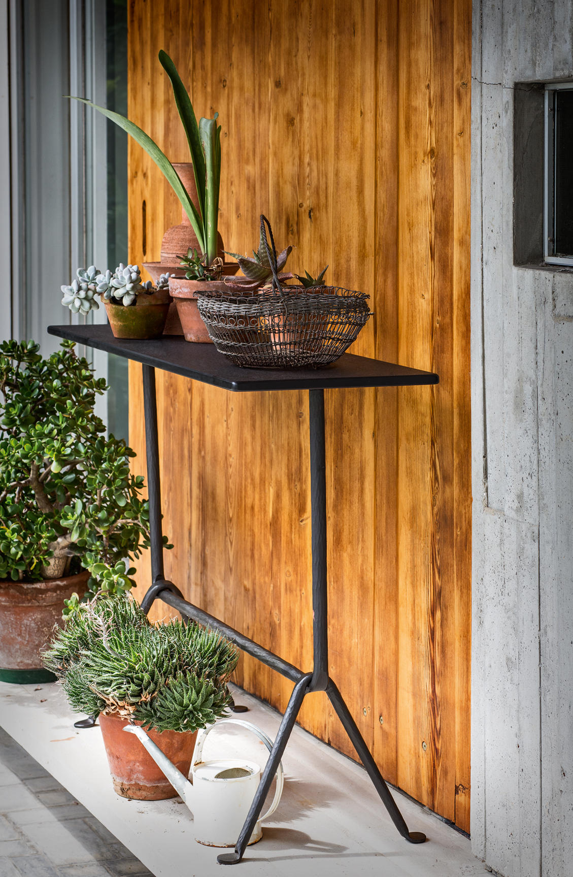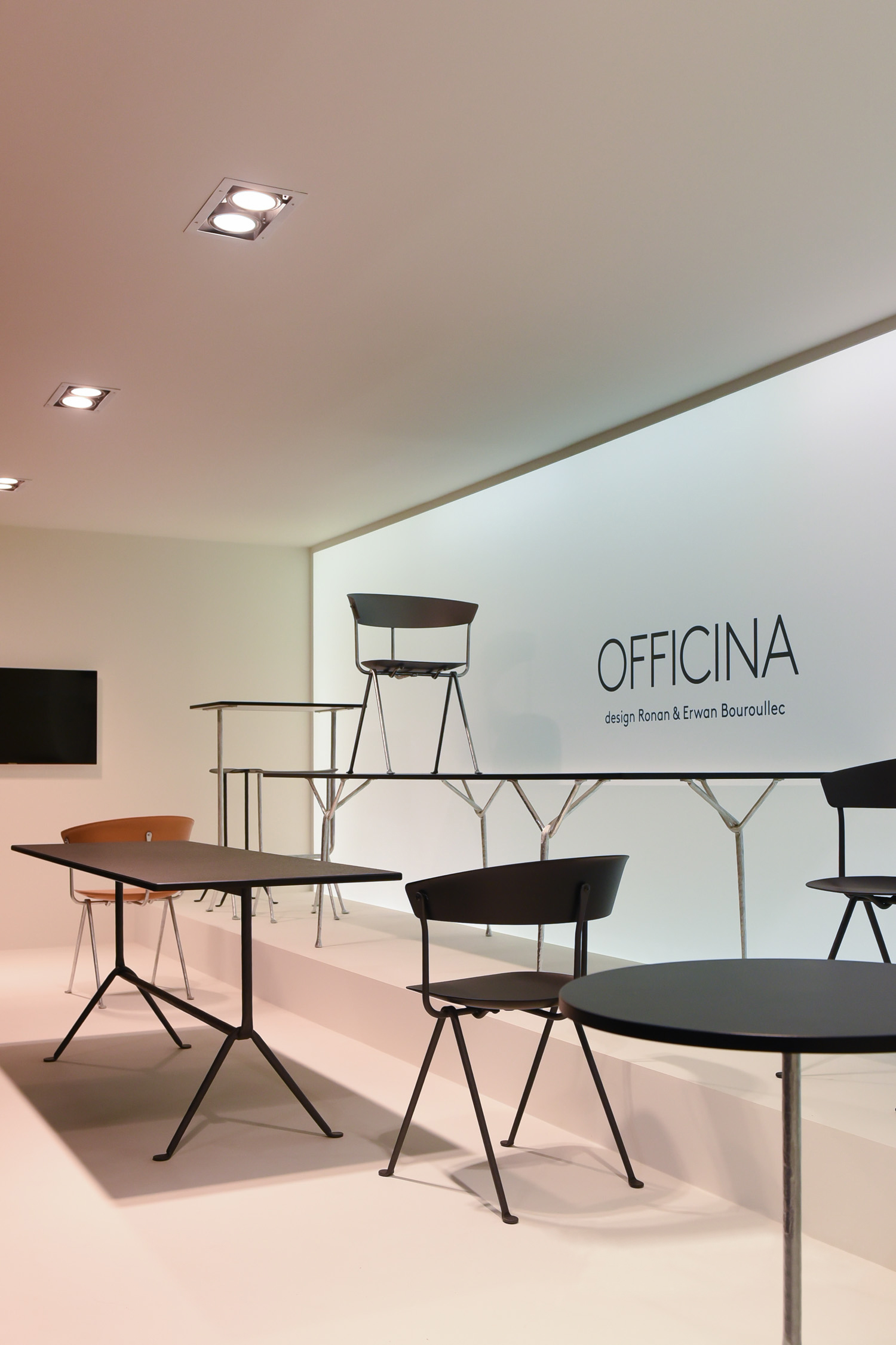 设计师罗南(Ronan)和Erwan Bouroullec用办公桌边设计了一种古老的锻造和锤击铁,用来制作各种形状。他们的目标是“利用这个古老的制造过程,给它一种新的视觉语言,”Erwan说。语言具有真实性和思想性。罗南指出:“通过对那些赋予它们形状的工具的随机、机械痕迹的反射,这些东西给工业计划带来了一股清新的气息。”
