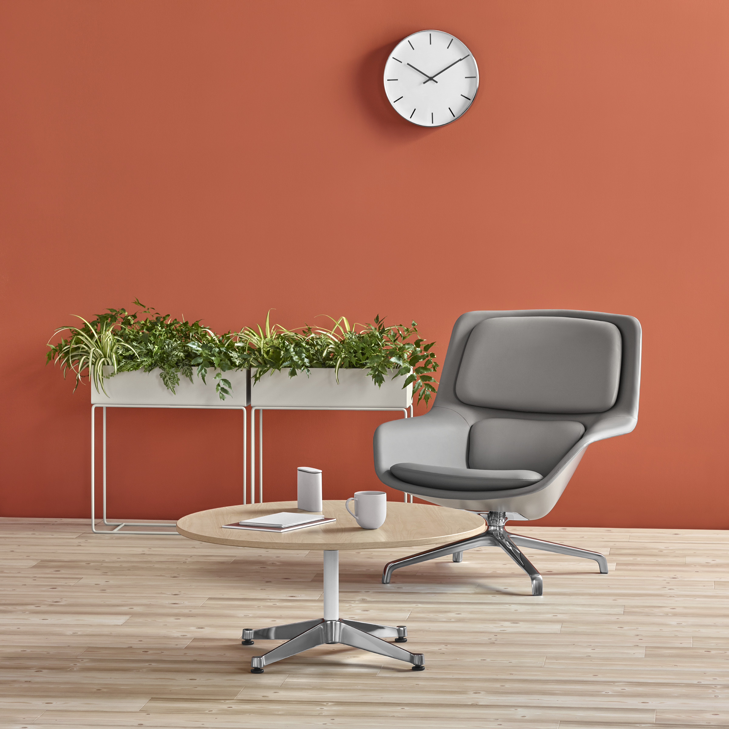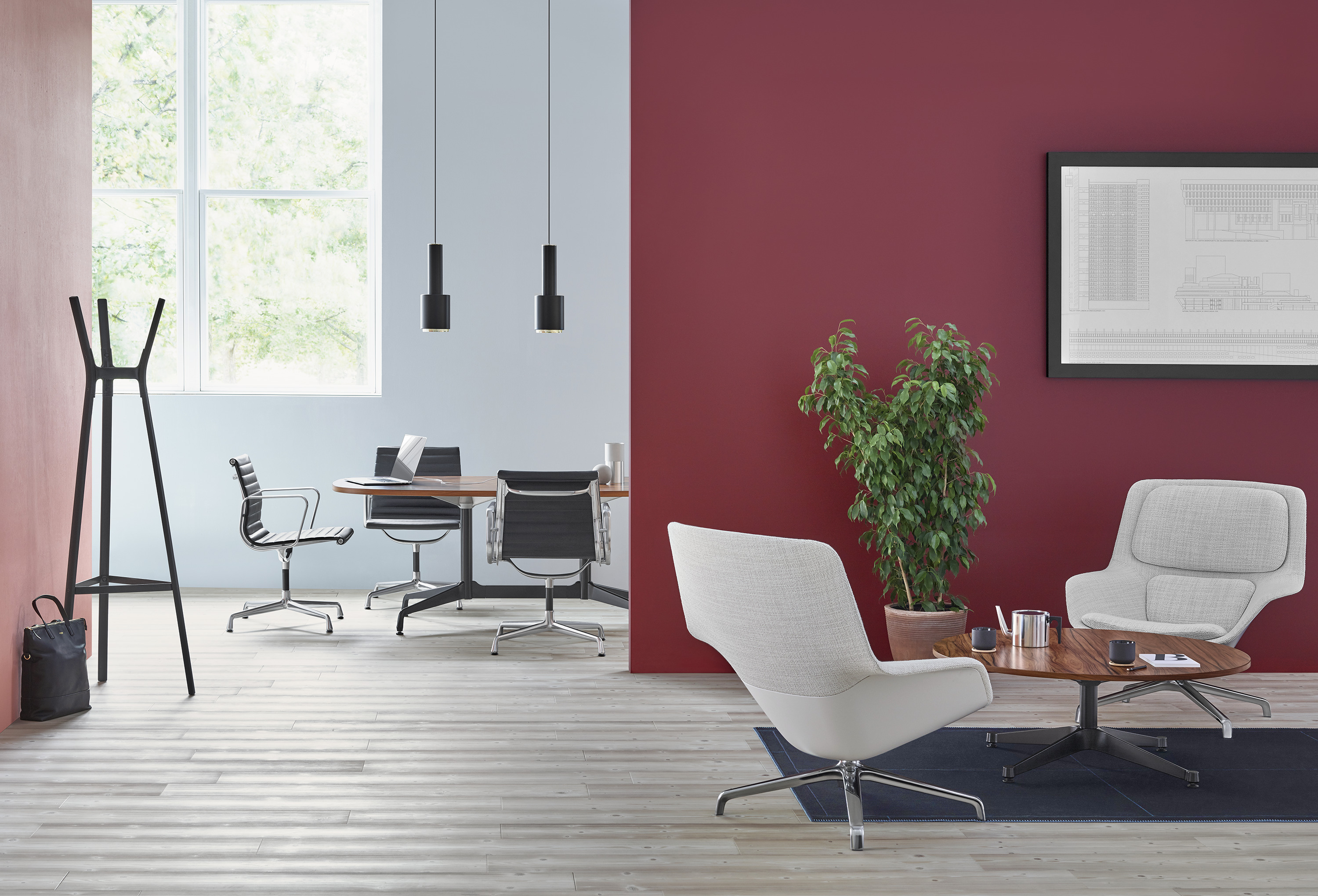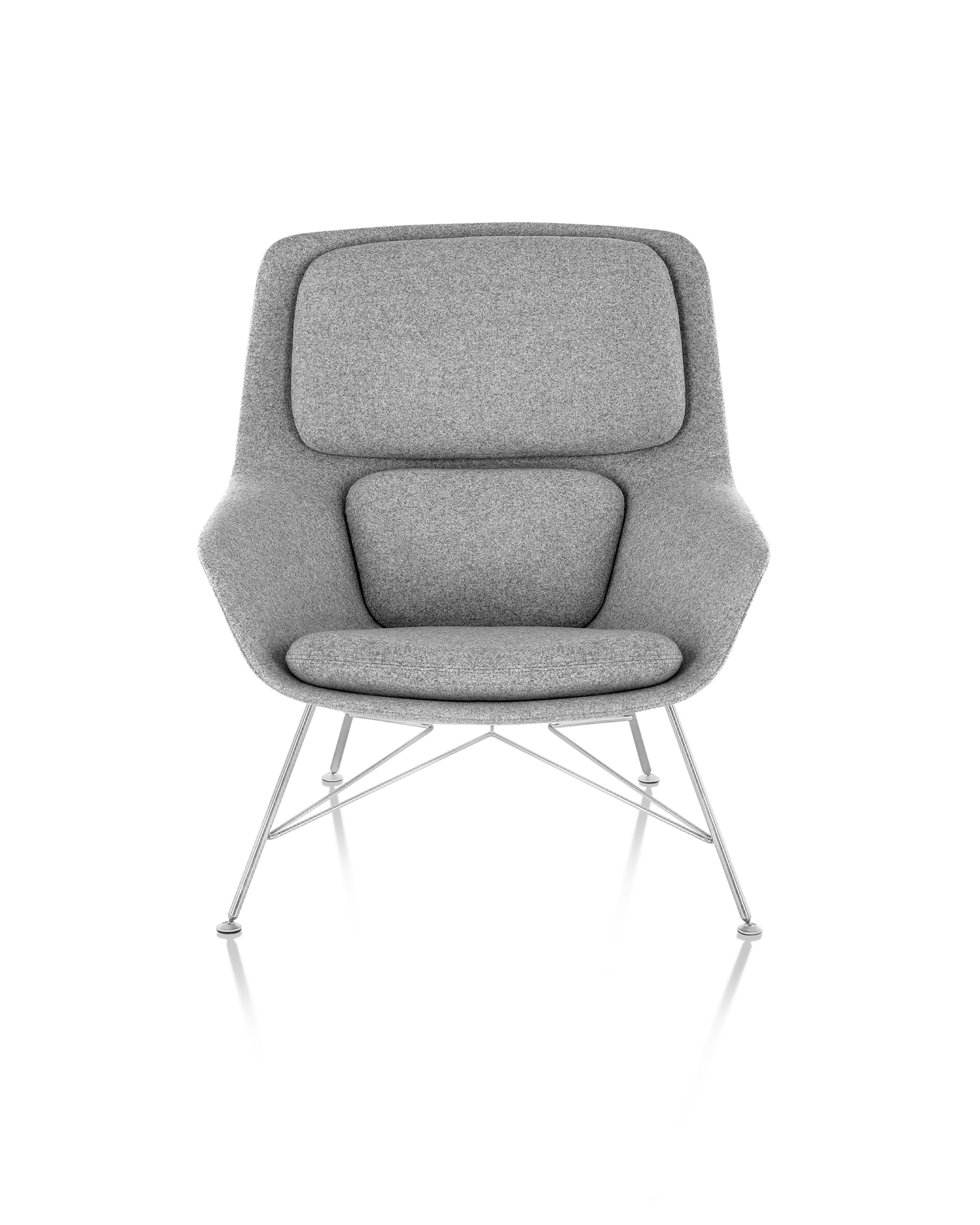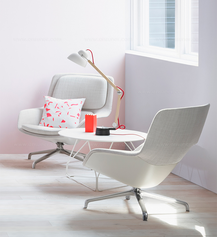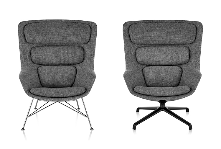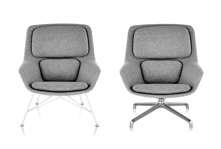 Striad能提供低、中、高三种靠背的款式,其中每款都可以选择四星自动返回底座或者固定的四腿钢丝底座,同时还能提供诸多饰面和软垫选项,适合与多种风格的空间搭配使用。