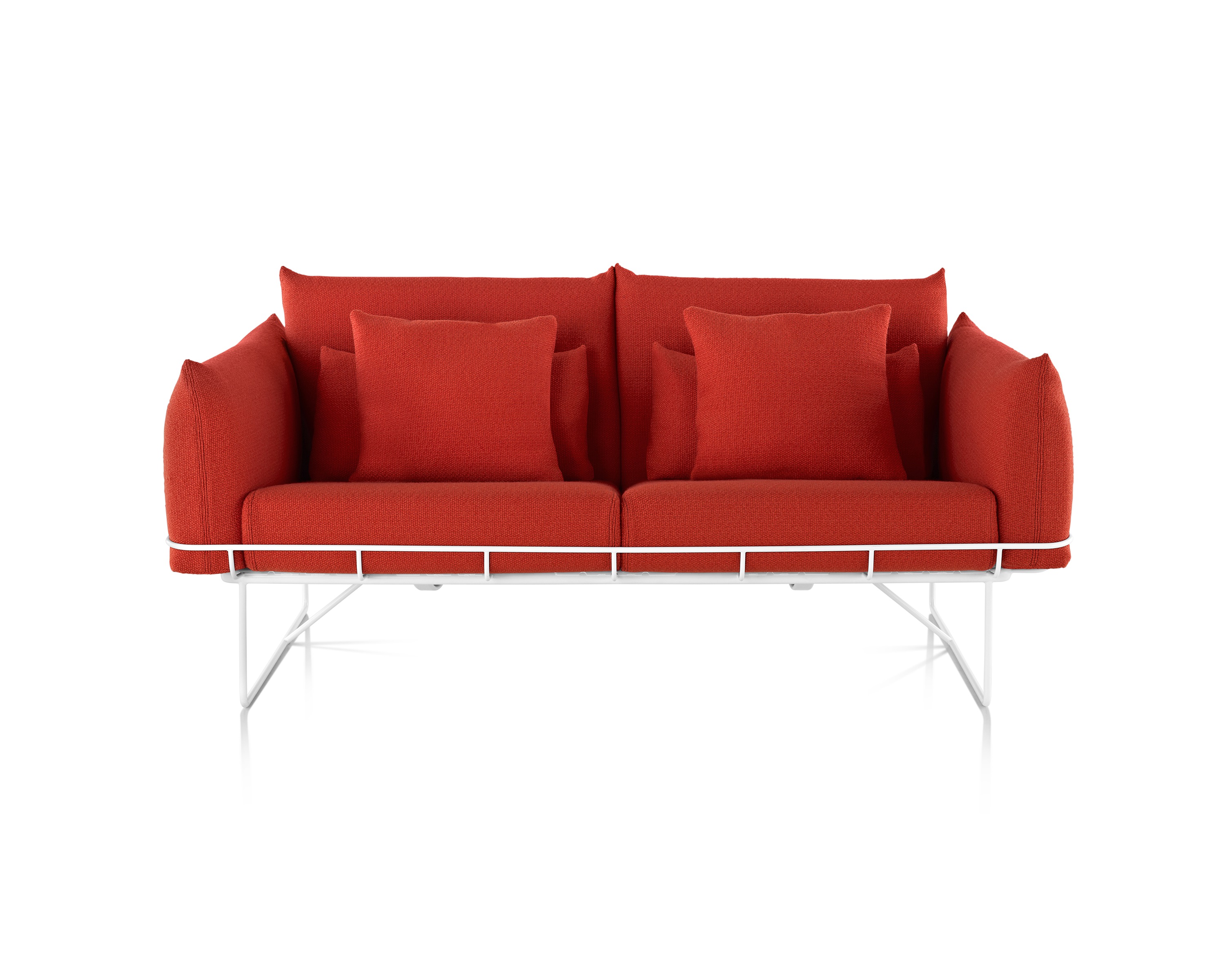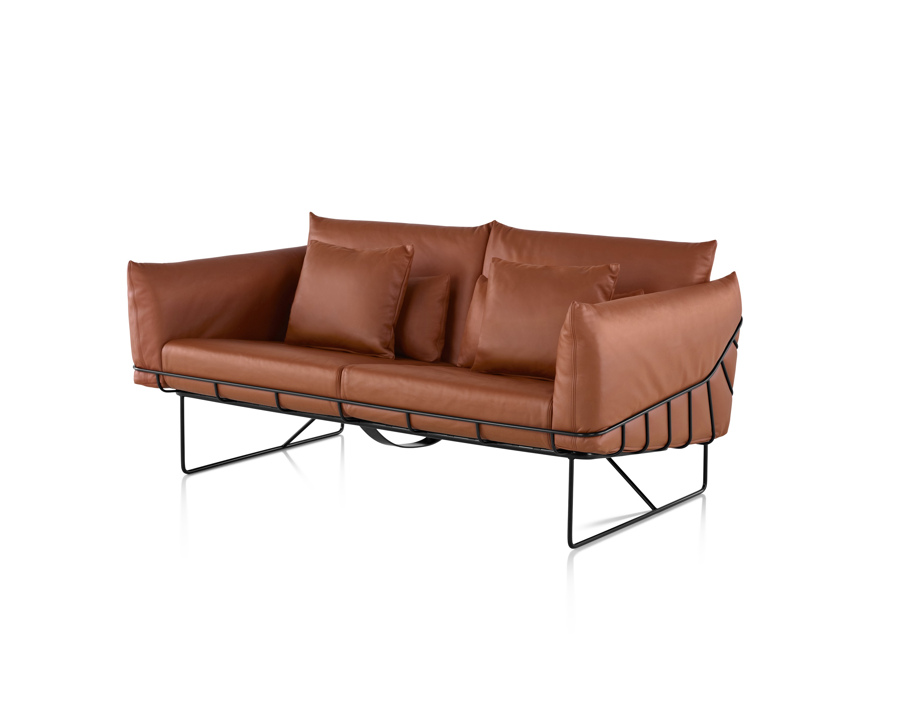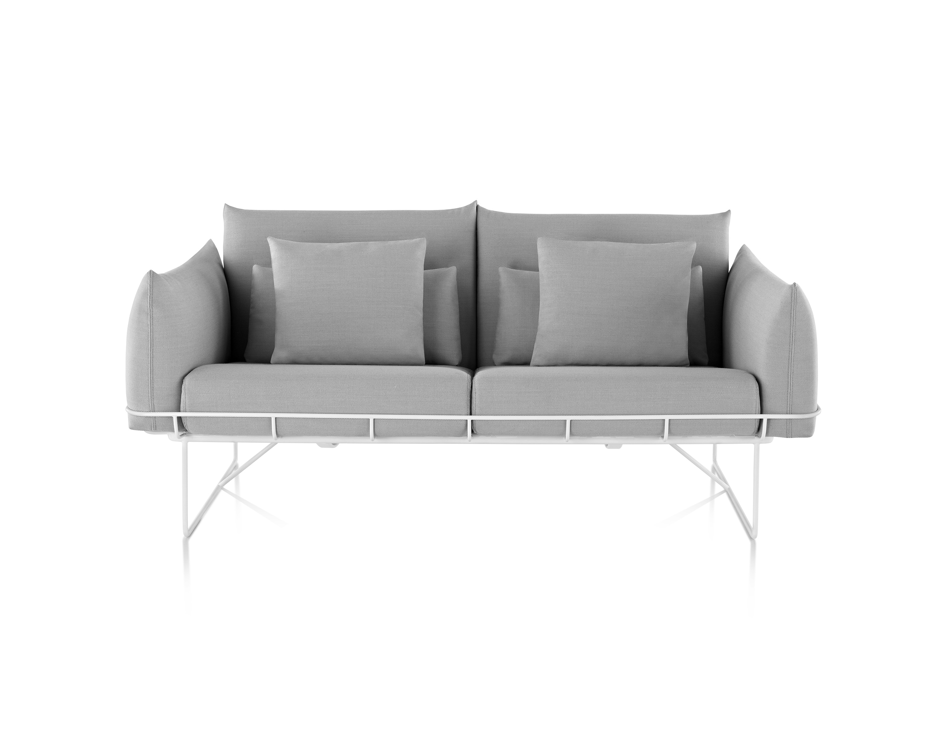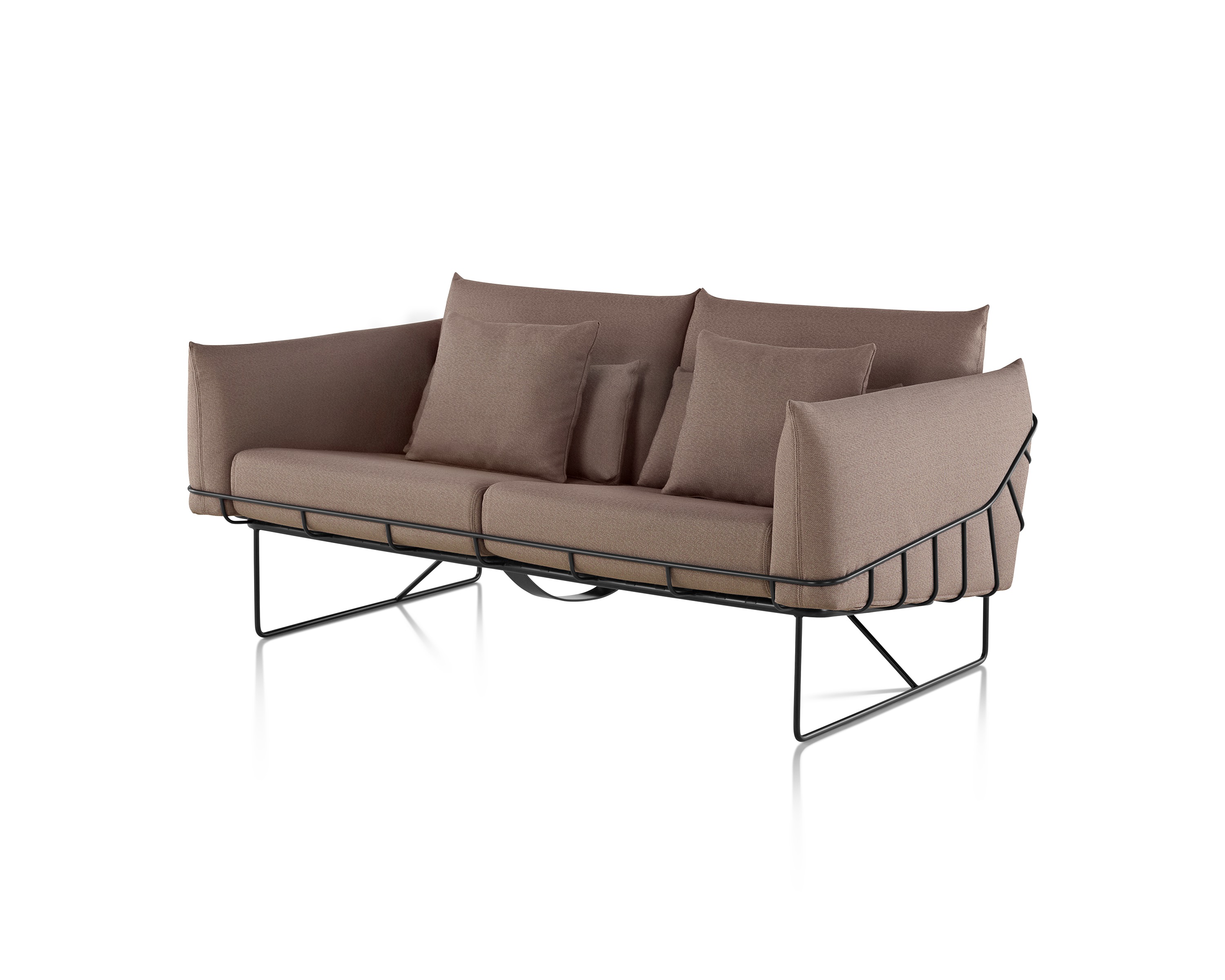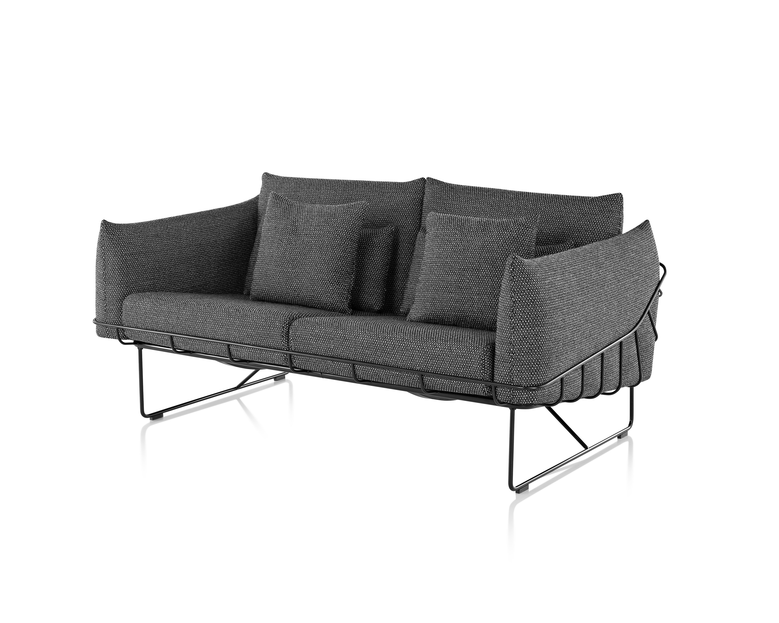 从视觉上说,柔软和体积包含在一个正式的框架,线框沙发组例证了一个反复出现的主题山姆赫克特和金科林:对比紧张。该设计的外部结构是由钢丝形成的——这是赫尔曼米勒经典设计中长期使用的材料,因为其强度和耐久性。车架内的坐垫是轮廓分明的,赫尔曼米勒(Herman Miller)最初为医疗行业开发的一种悬架技术让坐垫更加舒适。腰椎和抱枕是祭品的全部。轻便,大小不一,多用途的座椅可以轻松地变换位置,以满足不断变化的空间需求,以及在其中工作和放松的人。海克特和科林的设计体现了我们今天的生活方式。选择包括白色或黑色框架与多个室内装潢选择在两人和三人座位的沙发
