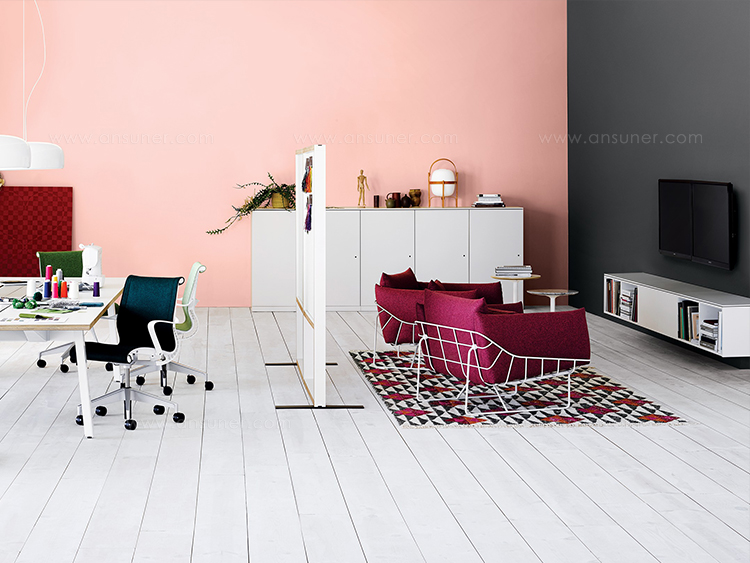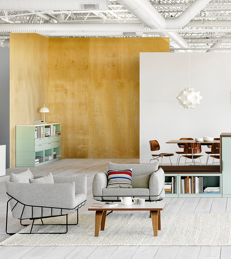 从视觉上说,柔软和体积包含在一个正式的框架,线框沙发组例证了一个反复出现的主题山姆赫克特和金科林:对比紧张。该设计的外部结构是由钢丝形成的——这是赫尔曼米勒经典设计中长期使用的材料,因为其强度和耐久性。车架内的坐垫是轮廓分明的,赫尔曼米勒(Herman Miller)最初为医疗行业开发的一种悬架技术让坐垫更加舒适。腰椎和抱枕是祭品的全部。轻便,大小不一,多用途的座椅可以轻松地变换位置,以满足不断变化的空间需求,以及在其中工作和放松的人。海克特和科林的设计体现了我们今天的生活方式。选择包括白色或黑色框架与多个室内装潢选择在两人和三人座位的沙发