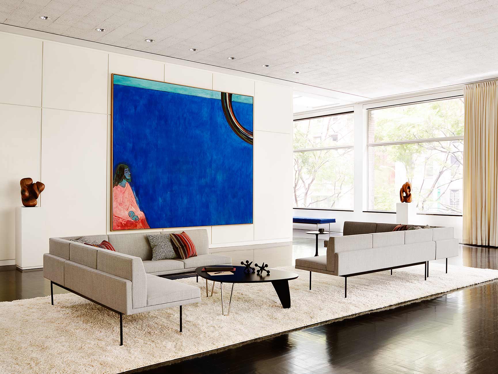 Tuxedo Lounge Seating设置在各种金属饰面的窄钢腿上,由于背部和(可选)臂形成的水平带,切割出低而光滑的外形。精心设计的室内装潢覆盖了纤薄的双密度泡沫垫,进一步增强了设计的轻巧外观。每件都有各种各样的室内装潢,有或没有绗缝。
