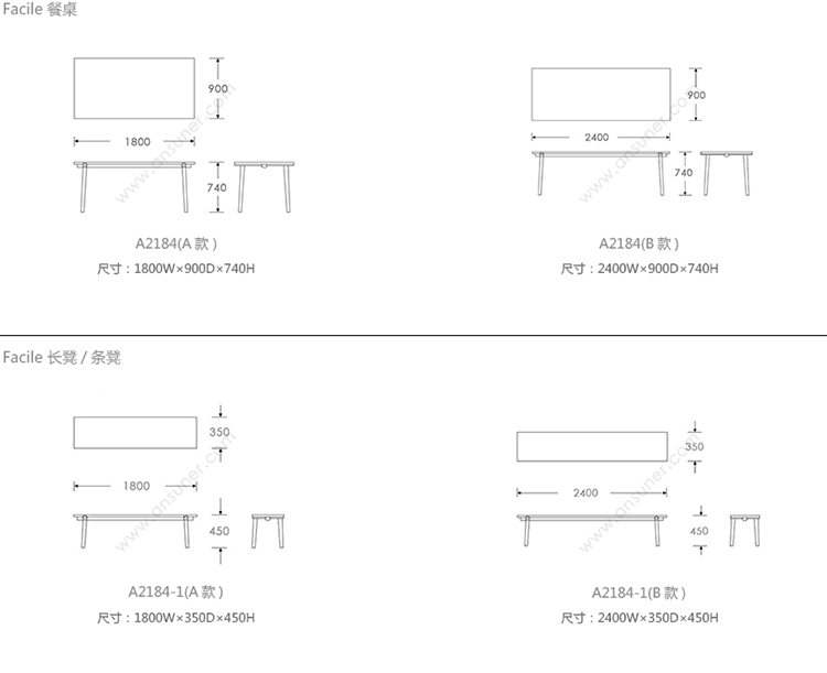 Facile 系列尺寸/示意图