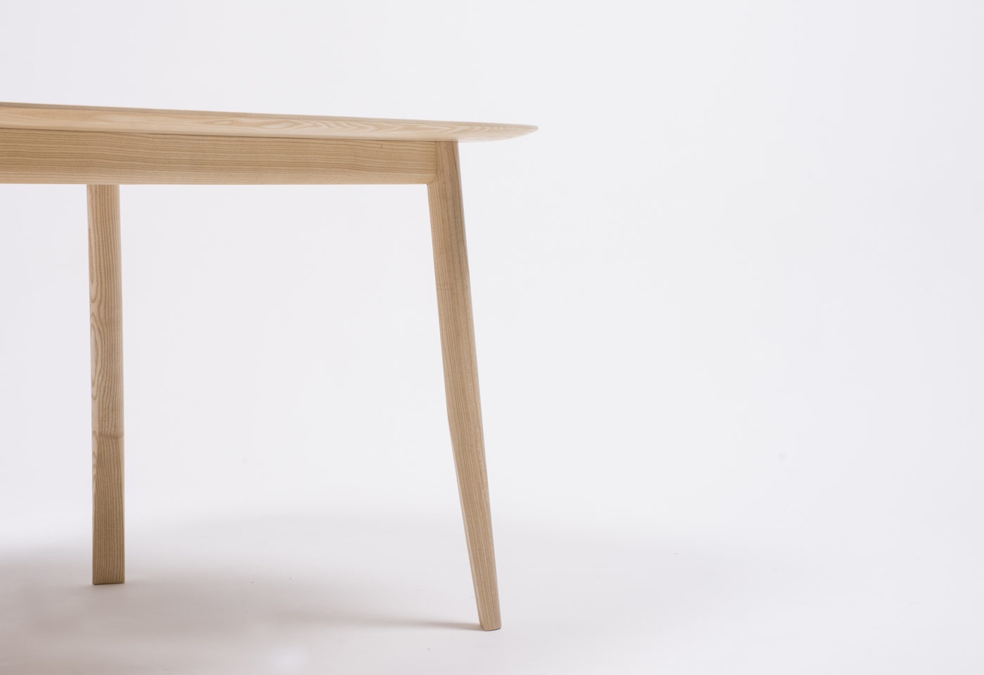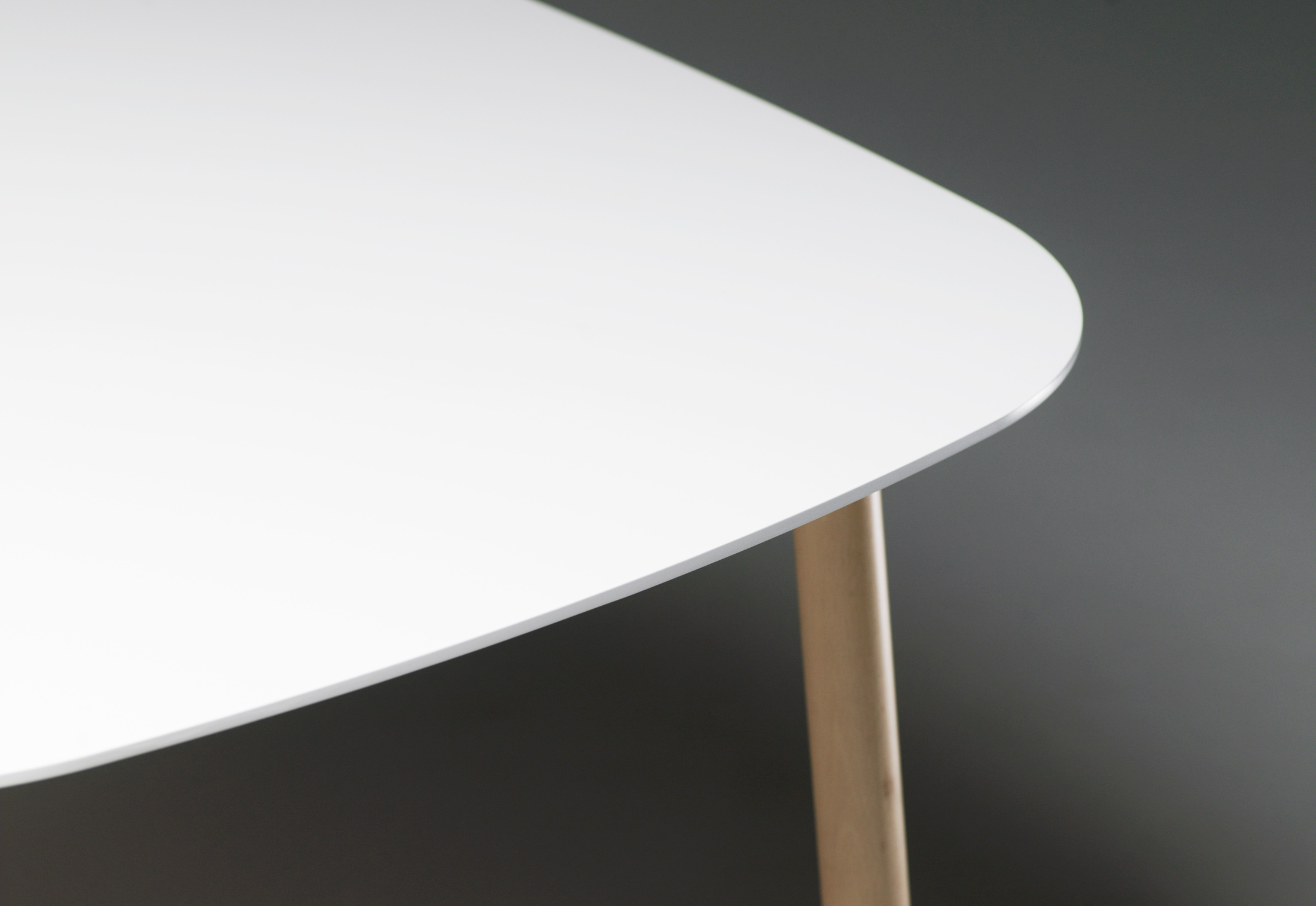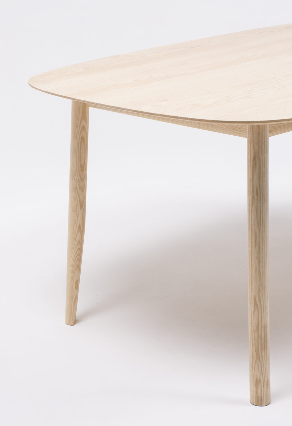 这张桌子有两种尺寸,腿和框架是实心的天然蜡灰,腿是雕刻和“切片”的,所以它们看起来很精致,而且很结实。光滑的顶部是中密度纤维板白色漆。