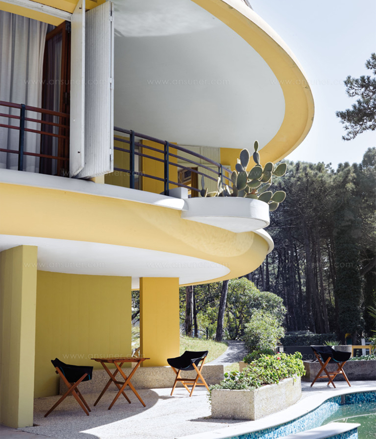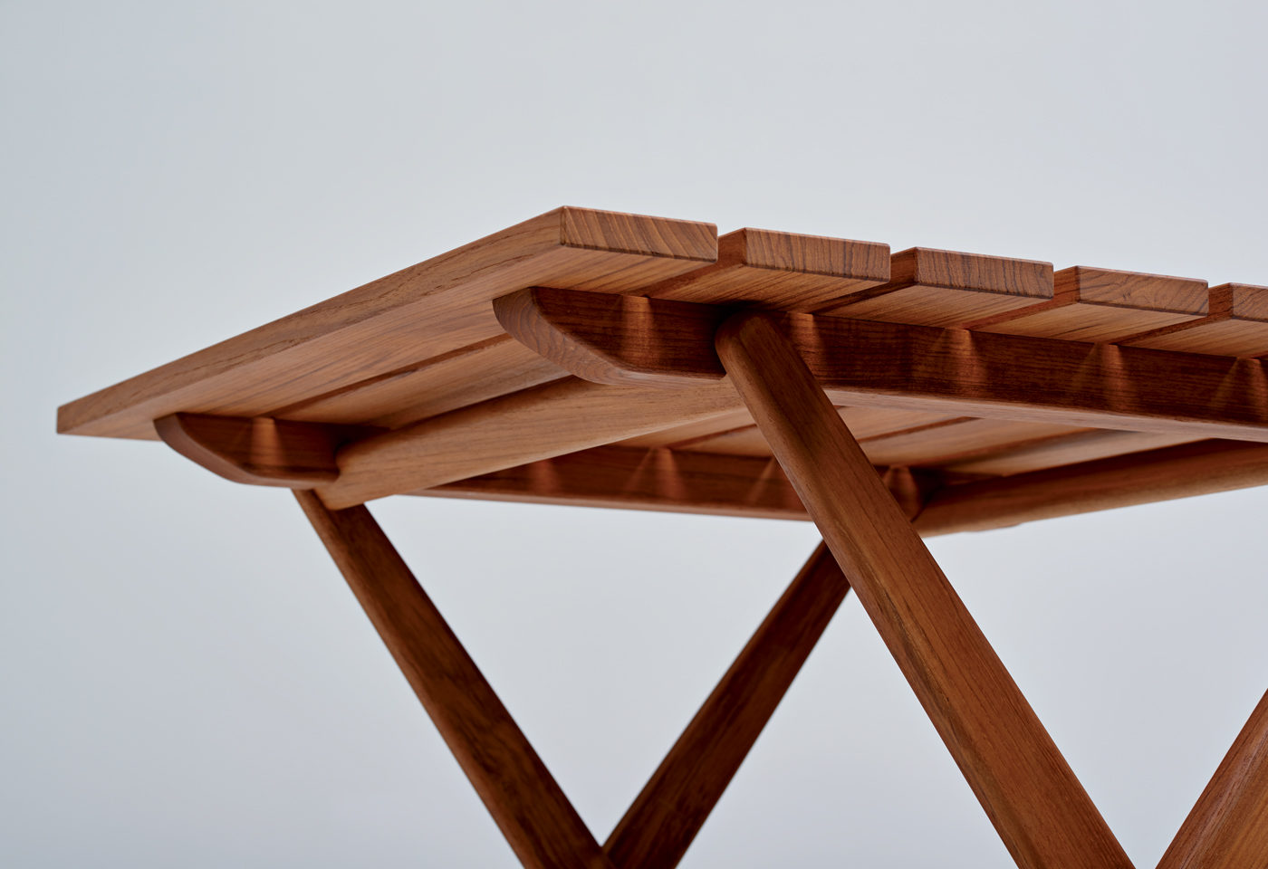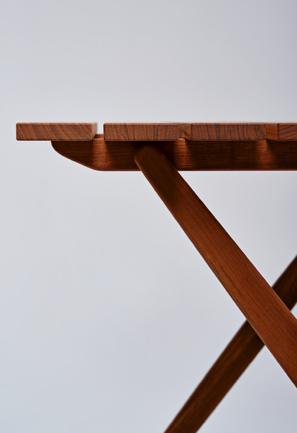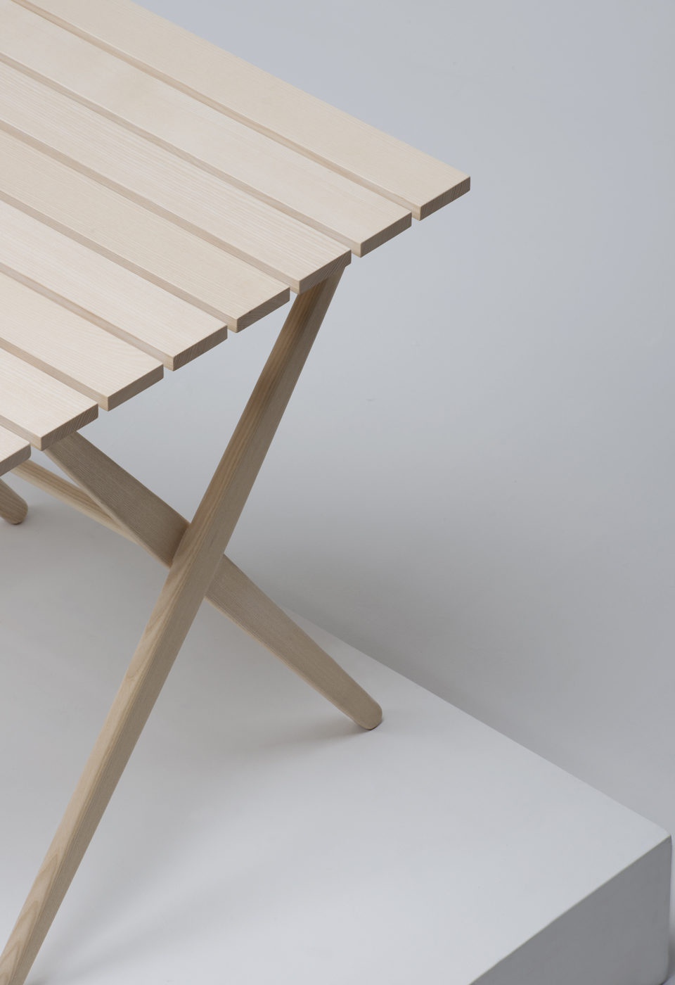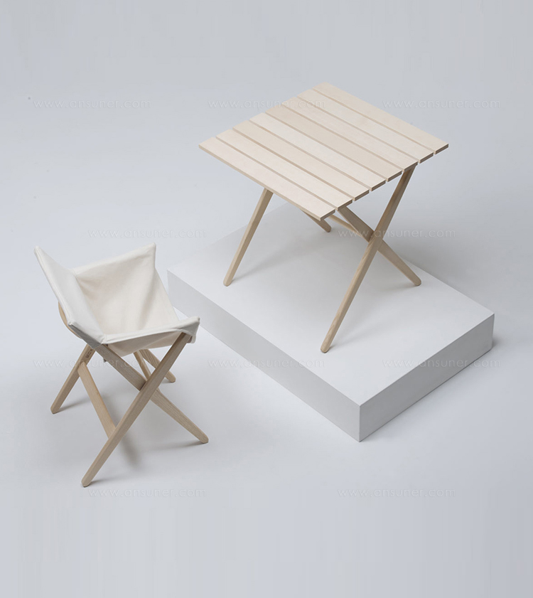 Fionda系列家具的特点是一个固体灰折叠框架与座椅制成