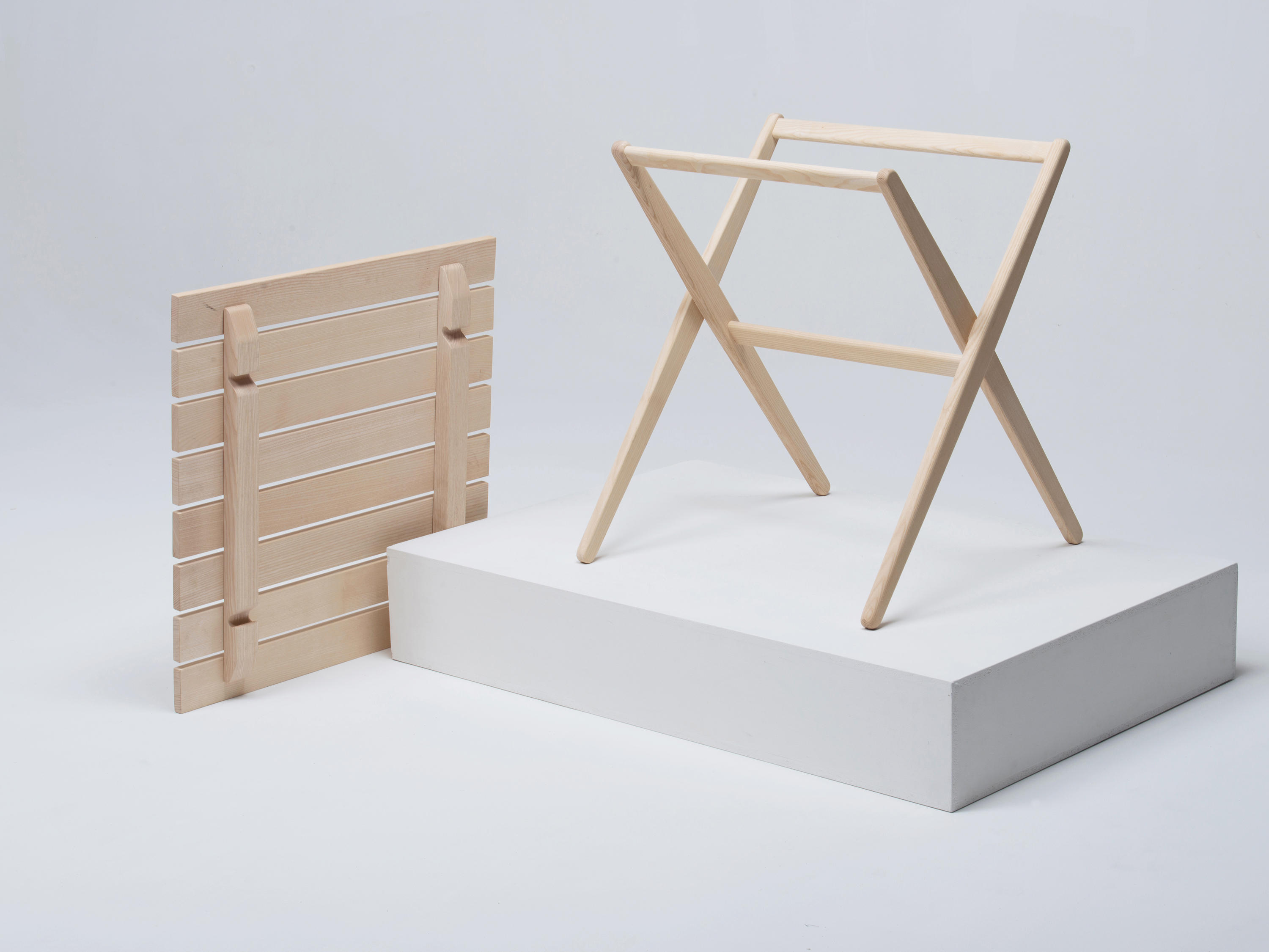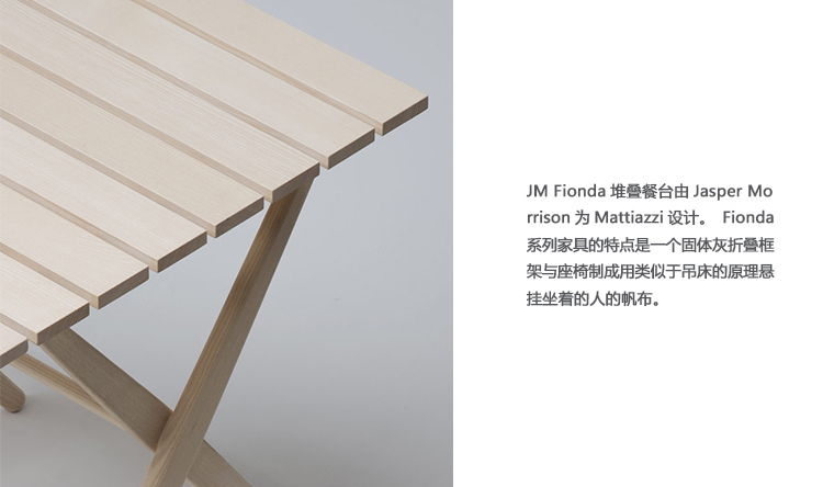 莫里森解释说,菲奥达的灵感来源于在日本买来的一张露营椅,就在他的起居室里。为了使座椅更舒适,更真实的客厅椅子,他决定做一个项目,去除铝条正面和背面。 结果是一把轻便而坚固的椅子可以堆叠起来盖上盖子。