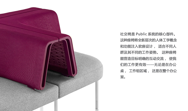 Public是首款支持非固定工作方式的办公系统,并且能在办公桌,流动空间以及团队区域内提供最大限度的舒适感,同时所有组件均纳入一致性设计理念。视觉上精致统一,模块化表面、储藏和座椅可根据您的需要采用各种配置方案,便于实现团队合作与个人工作的流畅转换。