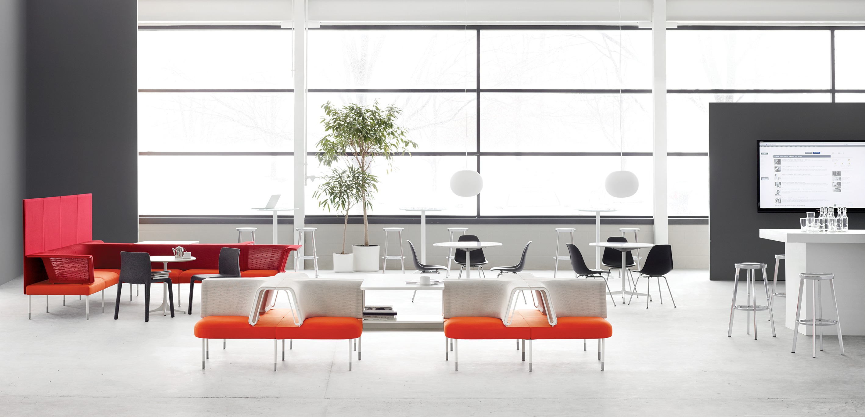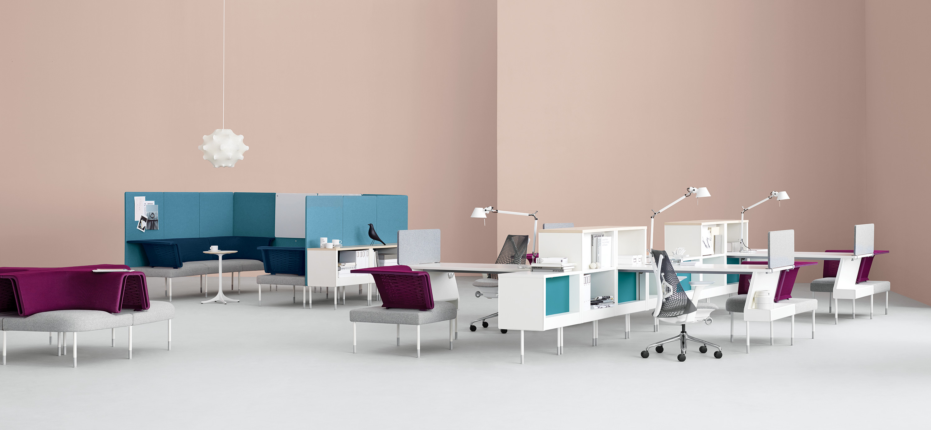 Public是首款支持非固定工作方式的办公系统,并且能在办公桌,流动空间以及团队区域内提供最大限度的舒适感,同时所有组件均纳入一致性设计理念。视觉上精致统一,模块化表面、储藏和座椅可根据您的需要采用各种配置方案,便于实现团队合作与个人工作的流畅转换。