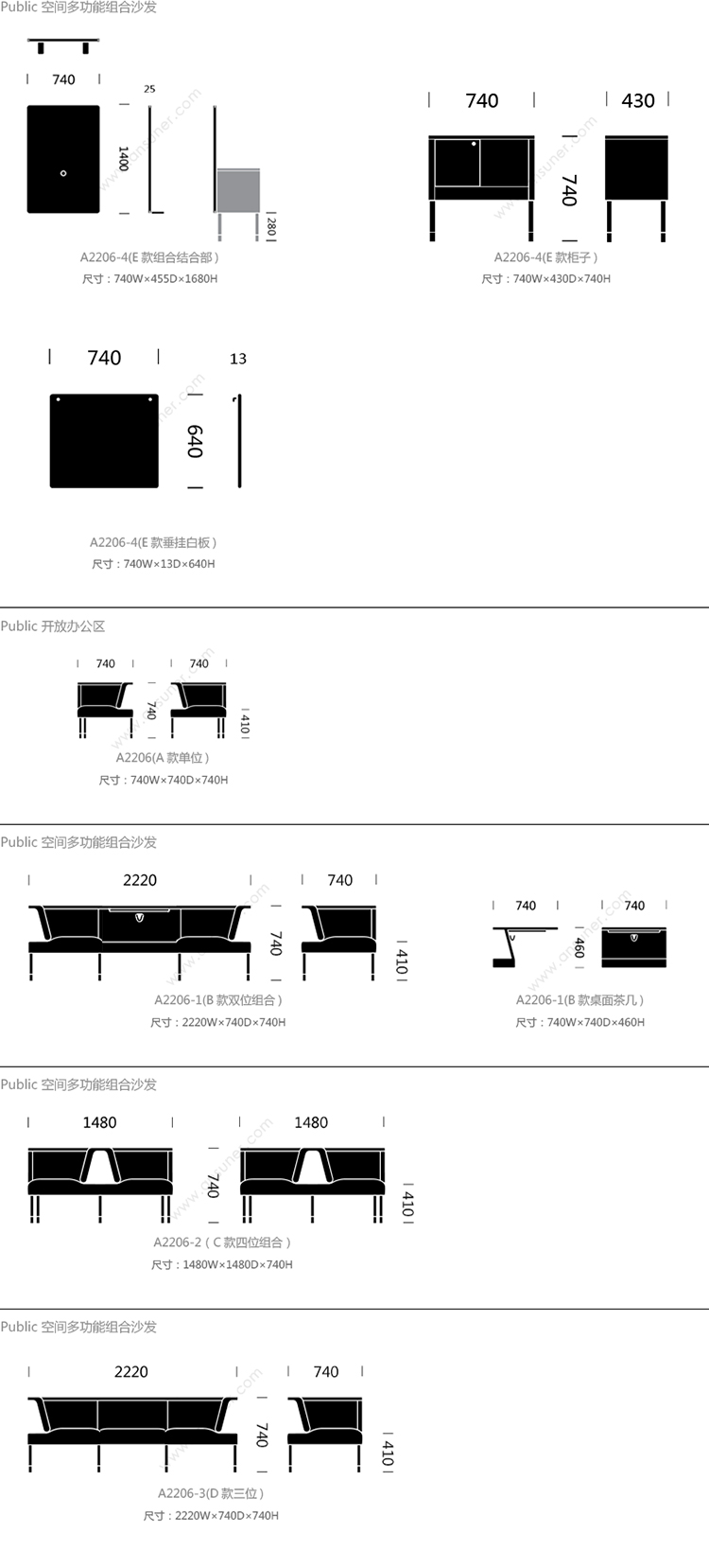 Public 系列尺寸/示意图