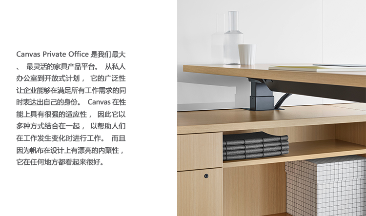 Canvas Private Office将Canvas Office Landscape的多功能性带入封闭空间。 为私人办公室设计的产品可以帮助人们高效地工作。 材料和尺寸的选择允许创造性的方式来提供空间 - 从传统到现代,为个人或小团体。 鉴于其产品线,Canvas Private Office产品可与Canvas平台上的任何产品配合使用,在办公室内保持一致的外观。