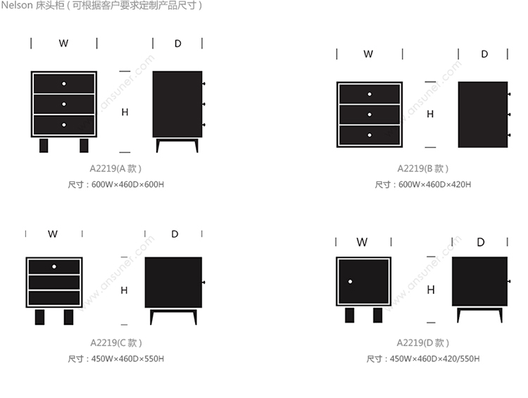 Nelson 床头柜 系列尺寸/示意图