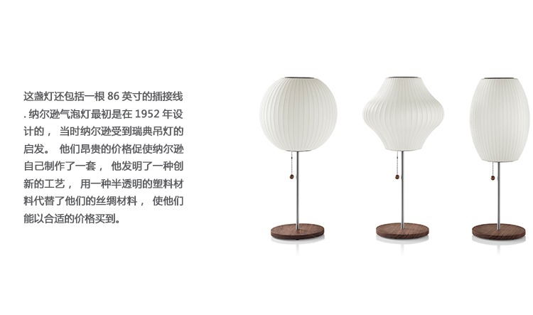 雪茄烟莲花台灯带来了这个经典的乔治纳尔逊设计的桌子设置。其优雅的灯罩设置在一个钢的基础上,有或没有胡桃盖,以及一个易于使用的拉链与实心胡桃末端。这盏灯还包括一根86英寸的插接线.纳尔逊气泡灯最初是在1952年设计的,当时纳尔逊受到瑞典吊灯的启发。他们昂贵的价格促使纳尔逊自己制作了一套,他发明了一种创新的工艺,用一种半透明的塑料材料代替了他们的丝绸材料,使他们能以合适的价格买到。