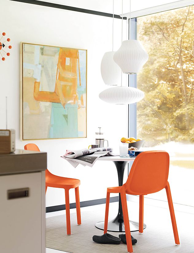 Nelson Cigar Bubble Pendant雪茄形气泡吊灯可以通过吊线板和6英寸长的吊绳悬挂在天花板上,散发出柔和均匀的光线。有小号、中号、大号和加大号几种不同规格。这些灯具最初生产于1952年,当时Nelson看到一组配有精心制作的丝质灯罩的瑞典吊灯,由此触发灵感。然而,吊灯的价格实在让人望而却步。Nelson决定设计制作自己的灯组,并且想出了用透明塑材代替真丝的创新工艺,使其能拥有更实惠的价格。