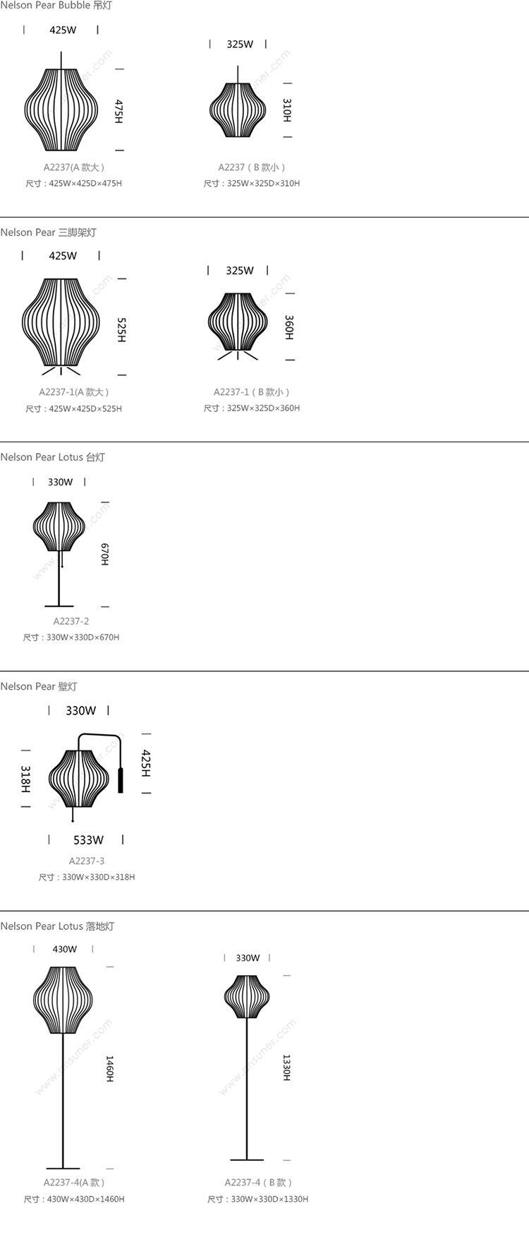 Nelson Pear Bubble 系列尺寸/示意图