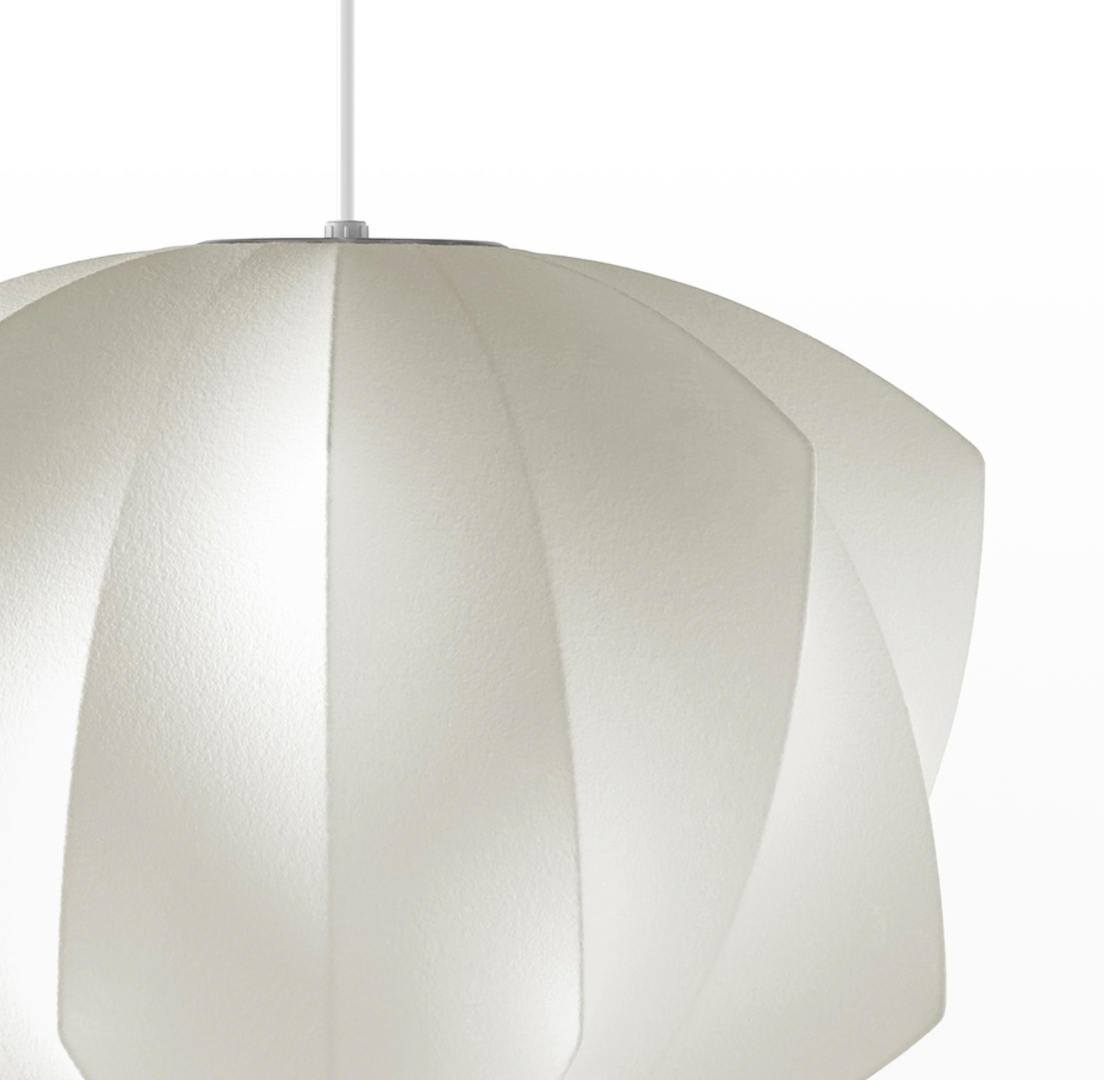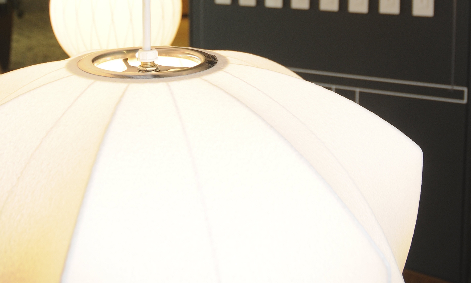 Nelson Propeller Bubble Pendant螺旋桨形气泡吊灯的下层结构中有许多棱角状的凹陷,外形十分醒目。这款雕塑般的吊灯配套有一个吊线板和将吊灯悬挂到天花板上的6英尺吊绳。Nelson最先于1952年设计了这些气泡灯,当时他偶尔碰到一组很喜欢的瑞典吊灯,想给自己的办公室买一套。“有一天,纽约的一家瑞典进口商品店Bonniers宣布对这些灯具进行促销。我带着办公室的一个伙计冲了过去,看到一款在商店里摆放了很久、上面满是手指印的样品居然标价125美金。”Nelson写到。这个价格在当时来讲太过昂贵,让Nelson萌生出自行设计的念头来。