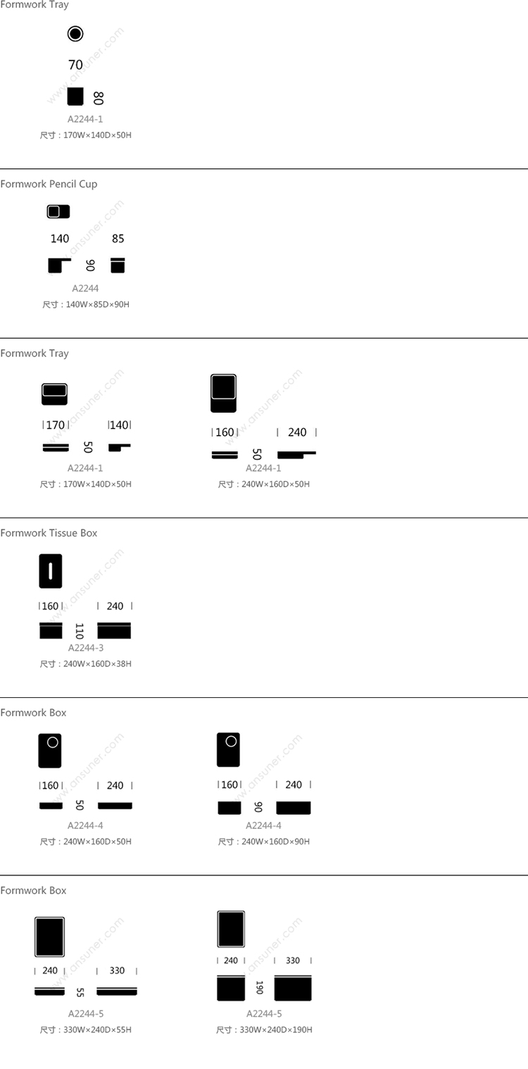Formwork Round Pencil Cup 系列尺寸/示意图