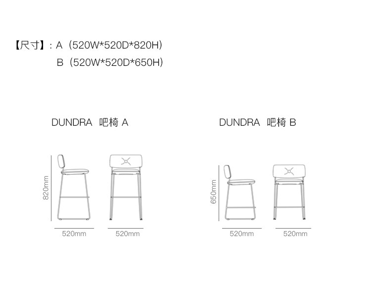 DUNDRA 吧椅 系列尺寸/示意图