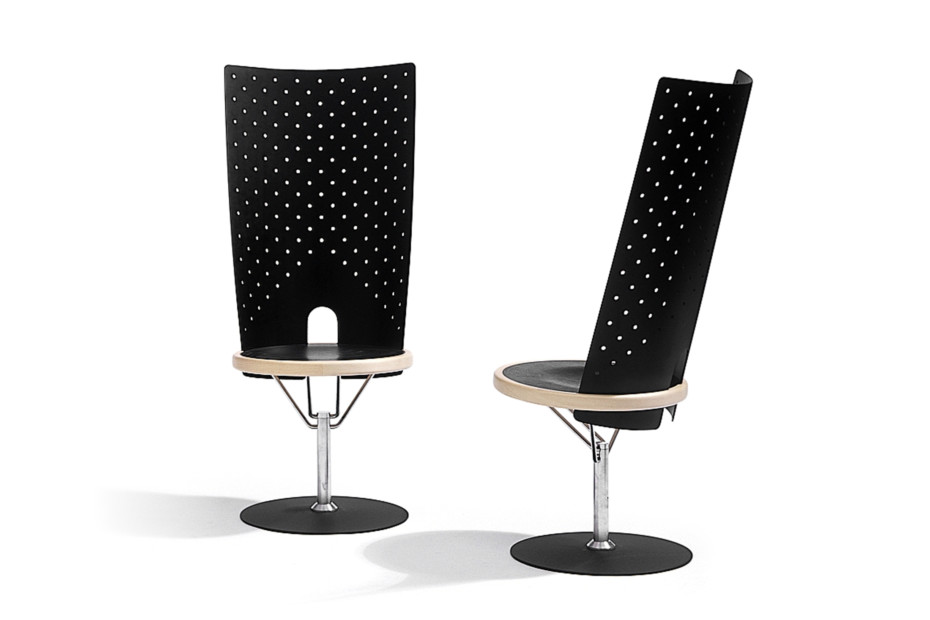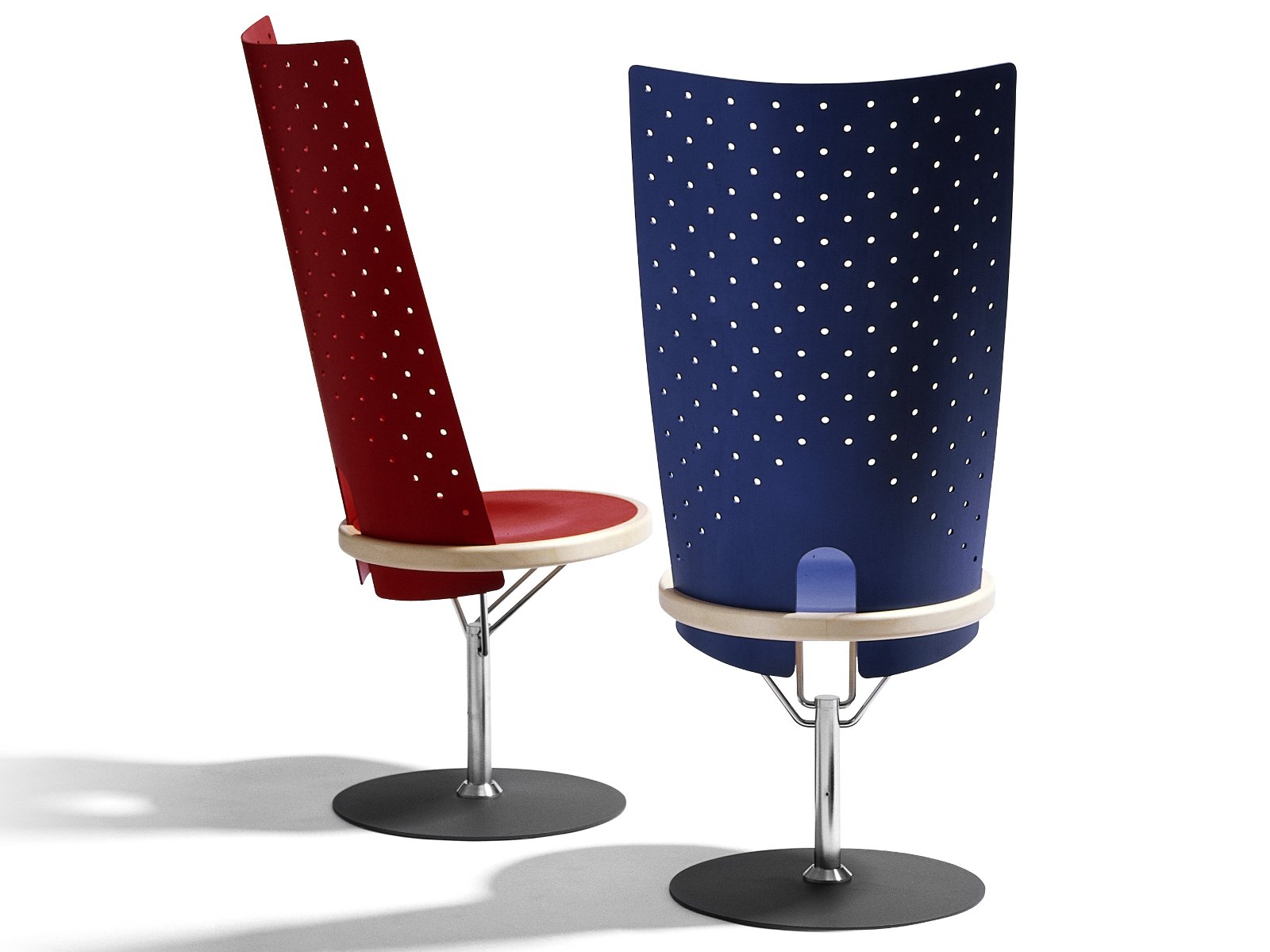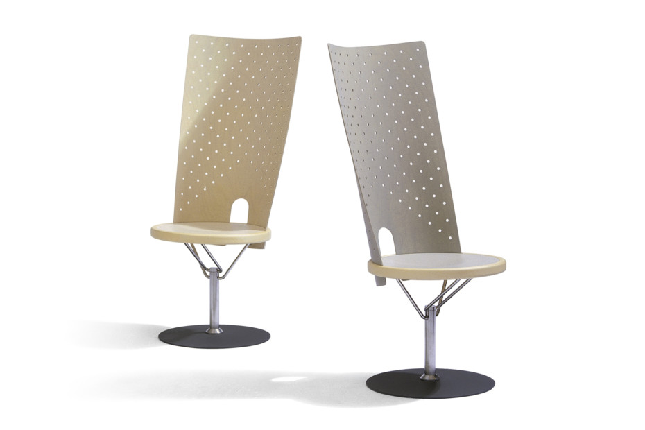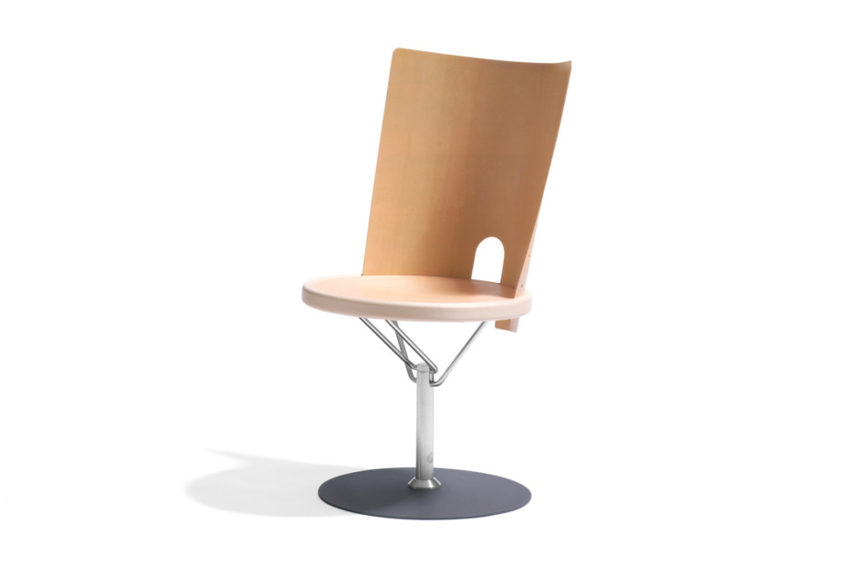 在钢旋转底座具有不锈钢冠上的涂漆钢脚板。座椅轮缘在压缩模制的在桦木单板层胶桦木帘布层。座椅中心和靠背。可选的扶手。座椅高度445毫米,总高度925毫米,总宽度510毫米,总深度620毫米,底座Ø480毫米,重量kg 12,5。