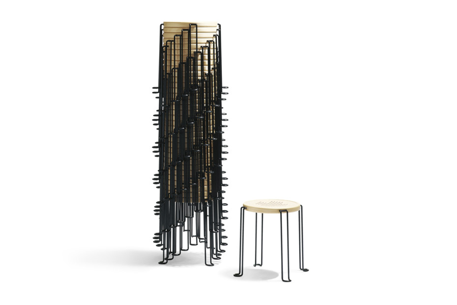 Pall B2 -Pall是桦木和钢制的凳子。可在咖啡馆,酒吧和餐馆等许多地方使用。最低座椅高度可堆叠。不锈钢或漆钢支腿。座椅高度470-650-820毫米,总宽度380毫米,座椅Ø380毫米,