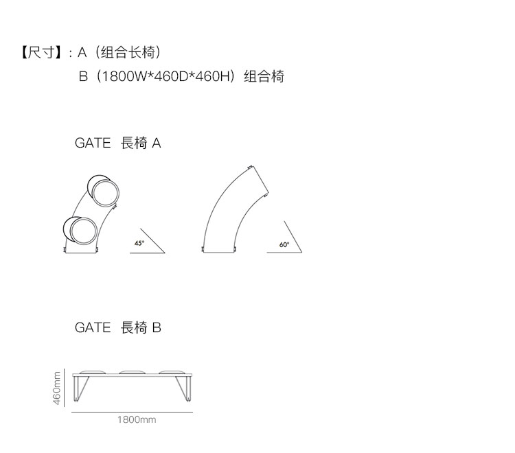 GATE 長椅(组合) 系列尺寸/示意图