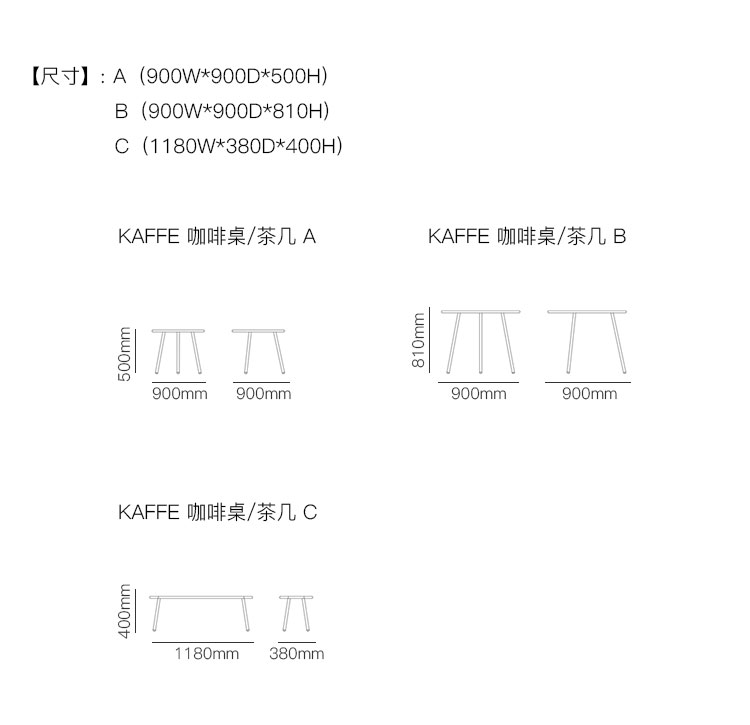 KAFFE 咖啡桌/茶几 系列尺寸/示意图