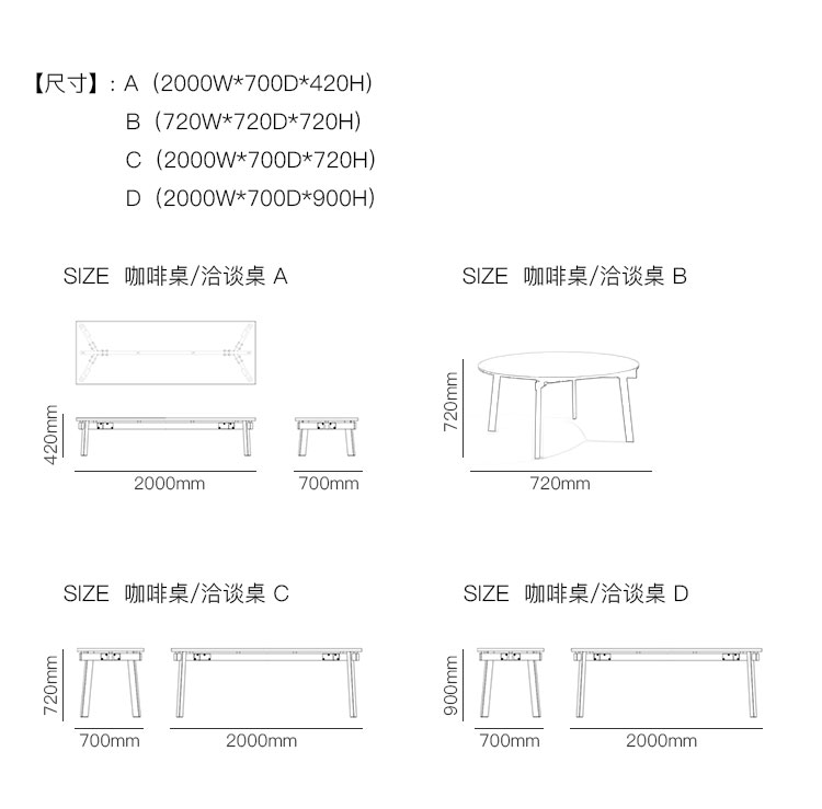 SIZE 咖啡桌/洽谈桌 系列尺寸/示意图