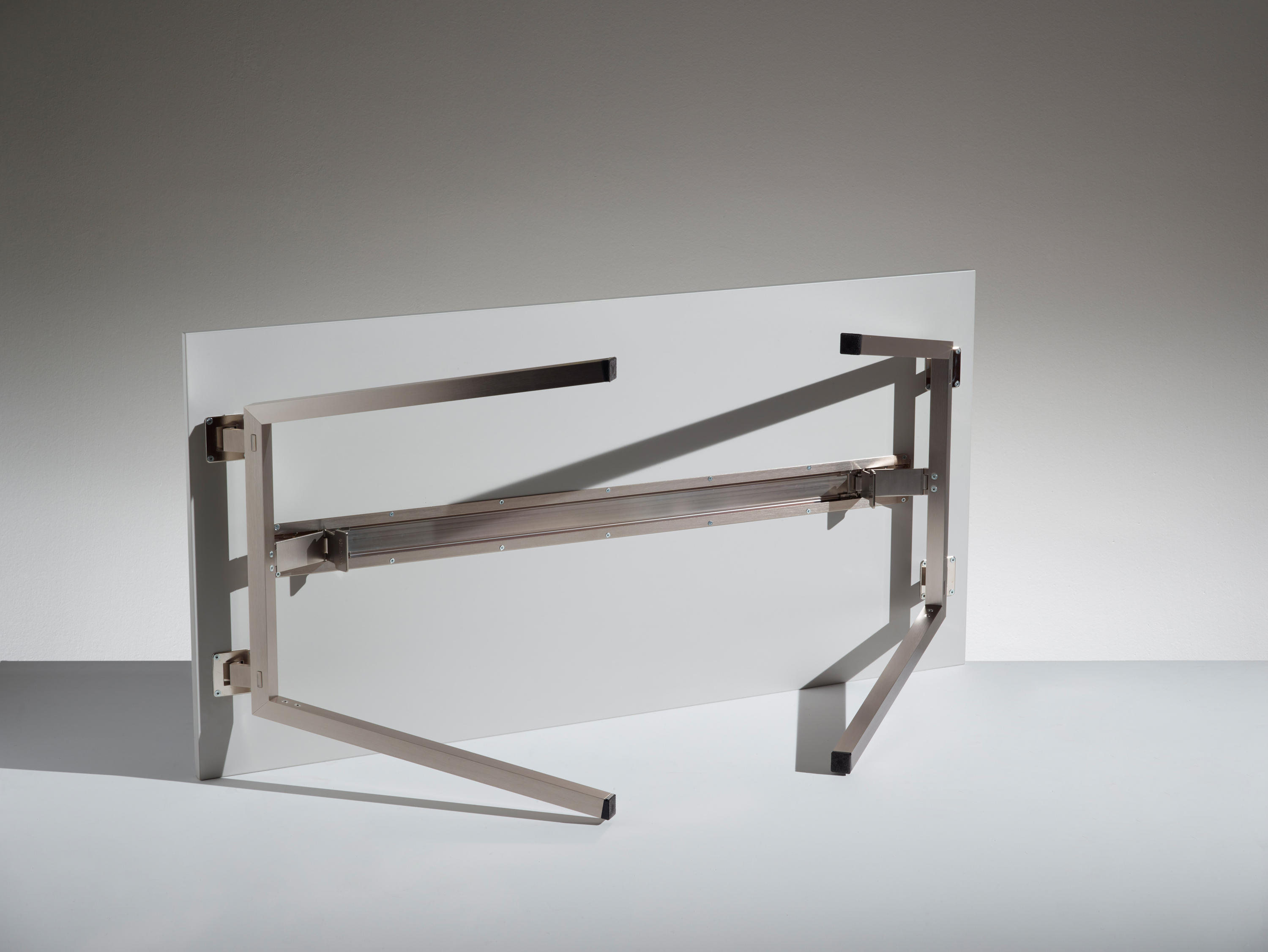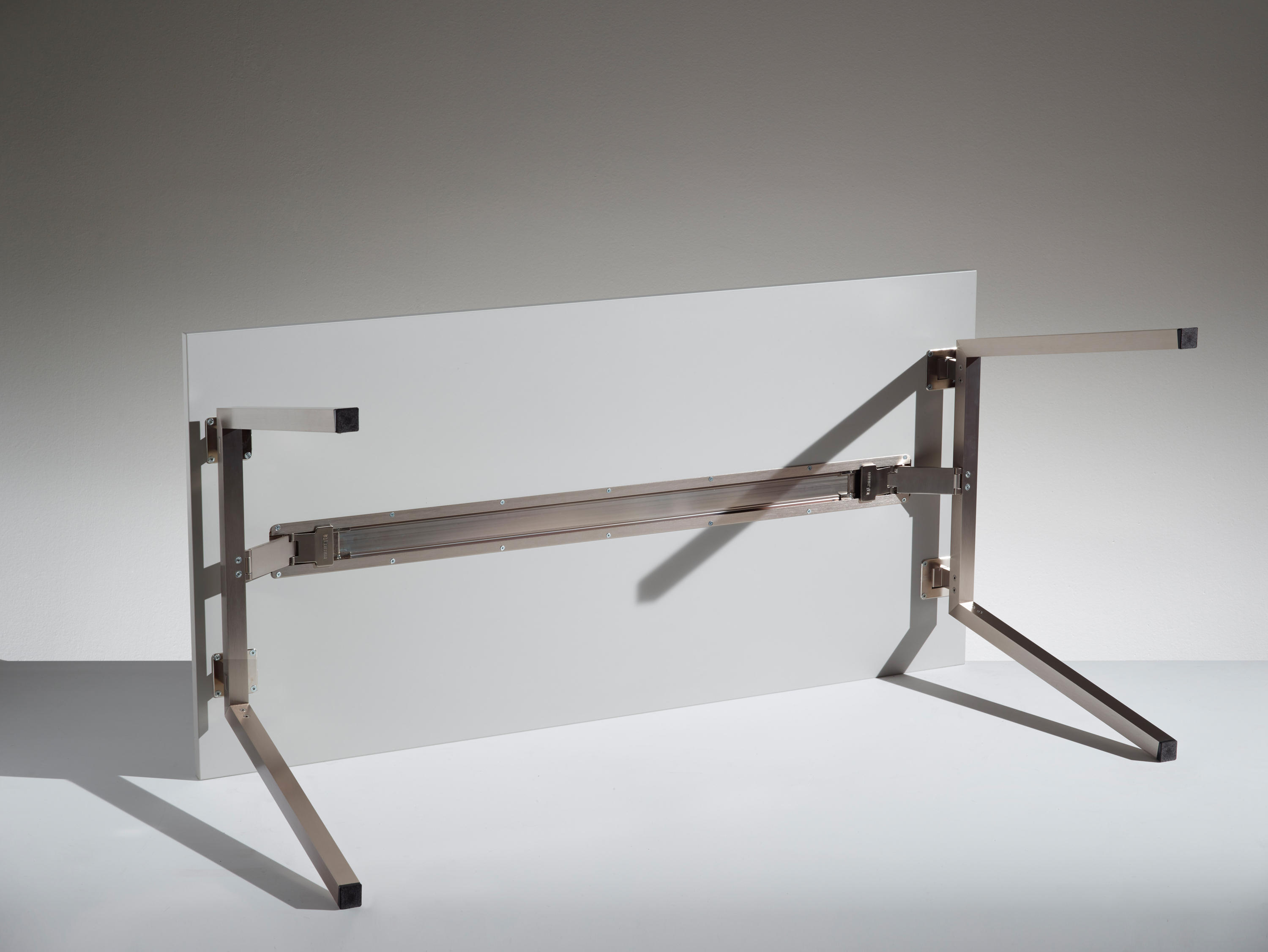 折叠桌适用于培训区域,研究和工作组,会议和会议,并具有基本的整洁设计。阳极氧化铝板结构,折叠后可为腿部提供特殊的锁定装置,便于在狭小空间内进行组装,拆卸,移动和存储。可生产各种尺寸,表面处理和颜色(固定版和折叠版)。