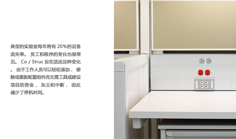 医疗保健和实验室应用的原始可移动模块化系统。Co/Struc为您提供了所需的好处——对您必须处理的无休止更改进行高效响应、易于消毒、真正的模块化——因此您可以轻松地切换组件和部件。你的投资也会有一个坚实的回报。有30年的历史记录,您可以放心,零部件将永远是可用的。