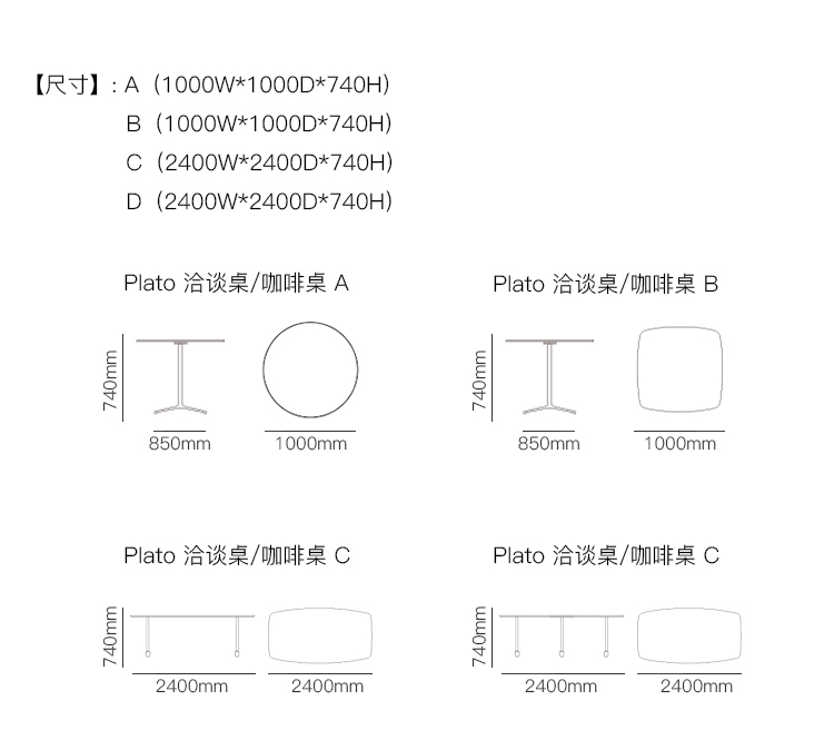 Plato 洽谈桌/咖啡桌 系列尺寸/示意图