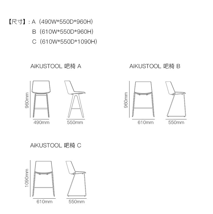 AiKUSTOOL 吧椅 系列尺寸/示意图