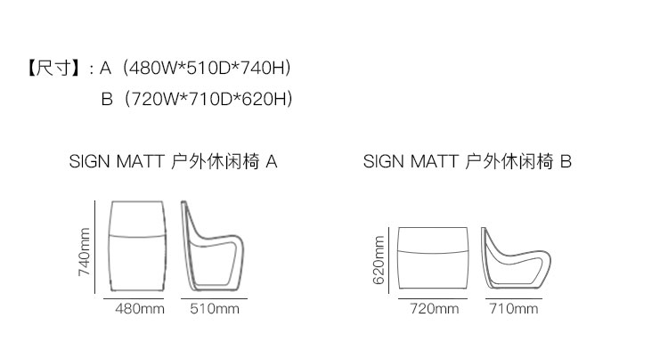 SIGN MATT 户外休闲椅 系列尺寸/示意图