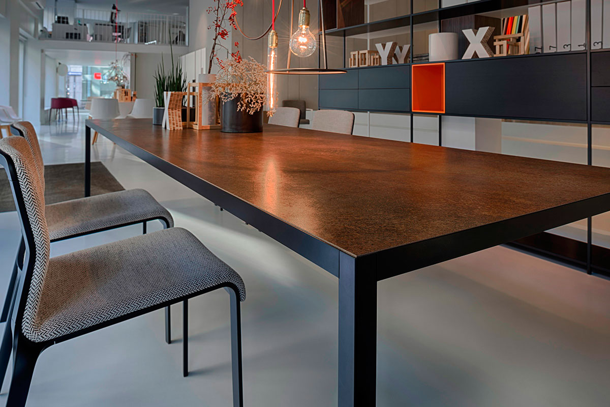 Lim 3.0是LIM标志性家族的改头换面,更新并变成了轻巧薄的桌子,具有更新和现代的标识。这些部分中包含的结构可以接受不同的材料,以提供单色和单一材料结构的替代选择。顶部内置于框架中,并提供白色,黑色,深红色,阿维奥蓝色,橙色和黄色喷漆钢化玻璃。亮色或缎面涂层的陶瓷,具有以下颜色可供选择:白色,黑色,中灰,无烟煤灰色和Corten;哑光版本中的Fenix,有以下颜色:白色,黑色,中灰色和斑鸠。框架采用挤压铝材制成,采用自然阳极氧化或哑光上漆的白色和石墨灰色。 桌子也有配备1个或2个用于电缆入口的开口和一个底部电缆桥架的版本。