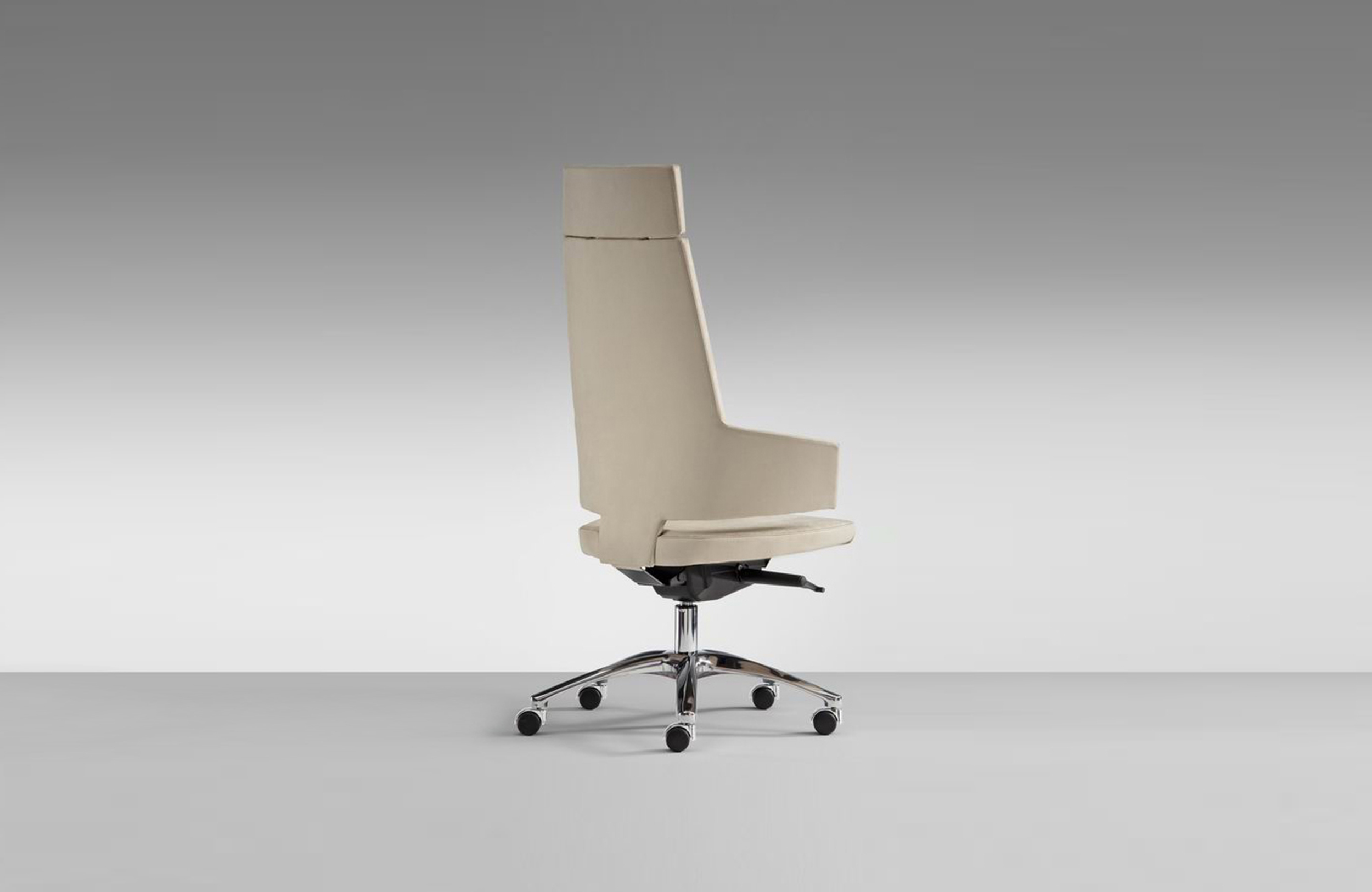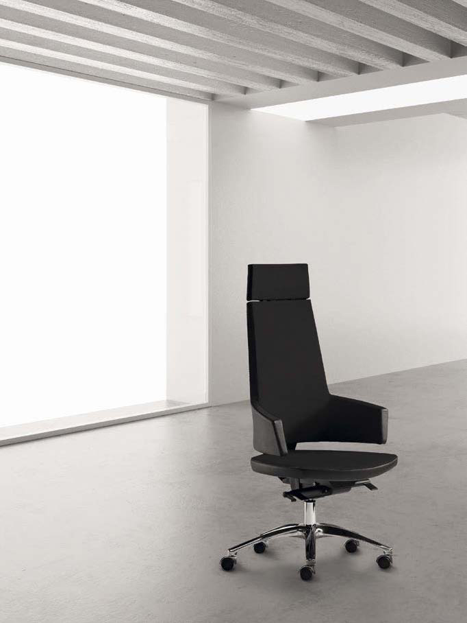 在品牌Mascagni中,这可能是来自Lucci和Orlandini的最大胆的创作。老板有干净的、几乎是未来派的线条,乍一看就像一个精致的收藏品。然而,这是一张执行椅,一个可以让你在办公桌上长时间工作的椅子。