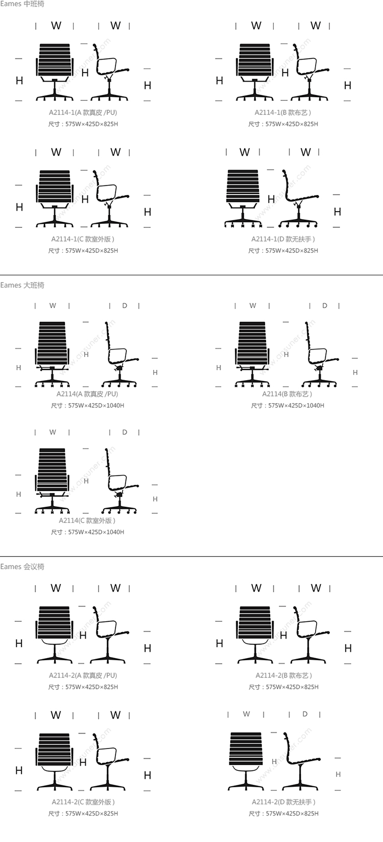Eames 中班椅 系列尺寸/示意图