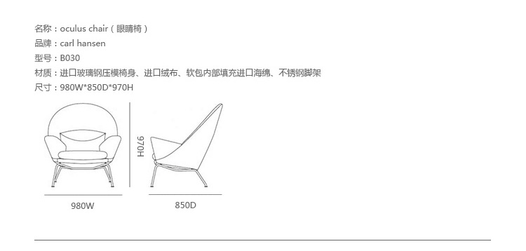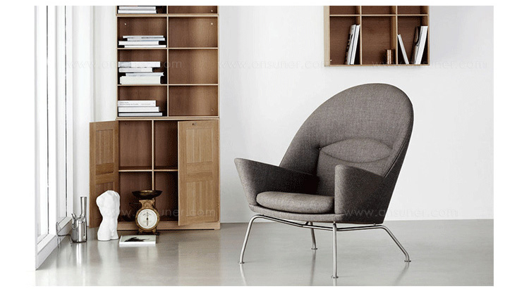 眼睛椅由Carl Hansen & Son与汉斯·j·韦格纳的工作室联合制作,简称CH468。这把椅子是韦格纳在1960年设计的,但之间从来没有在生产。据目前所知,工作室还是原来的样子。在现有椅子的原型上,结合一些照片,我们对它进行生产。CH468是一把雕塑般的安乐椅,背部和颈部支撑提供各种舒服的坐姿。跟韦格纳设计的一样,工匠用木头制作内部框架。拉丝不锈钢的腿部支架,创建了一个平衡,与宽敞的衬垫形成对比。CH468有皮革或织物软垫可选,添加脚凳以达到更好的舒适度。