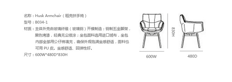 "Husk Armchair(稻壳扶手椅)是著名的西班牙设计师Patricia Urquiola(帕齐希亚·奥奇拉)在2011年设计的户外家具。Husk Armchair(稻壳扶手椅)在米兰家具展中成为了最让人瞩目的一款户外家具,带有扶手,其每个部件都经过精心的设计,创意的设计、柔软的坐感、独特的外观,给用户提供了一个现代、舒适、简约的休息体验。"