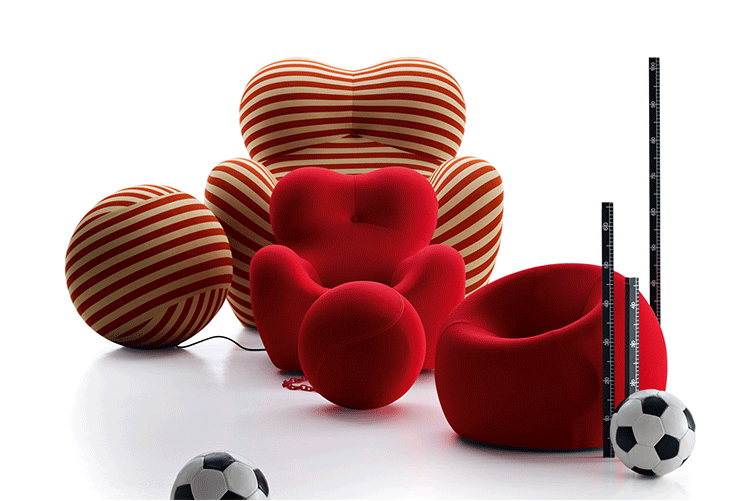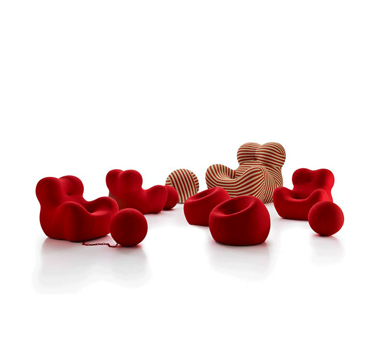自从Up系列1969年面世以来,就成为一款最杰出的设计。此系列七款大小不一的坐具给人们以非凡的视觉冲击,让它们显得与众不同。Up5是此系列中最著名的一款,一个像女人的坐具与一个球形的脚凳连在一起,似乎要让女人屈服。其由意大利著名设计师Gaetano pesce设计,外形模仿女性性感的曲线轮廓,而且为了让使用者坐在上面能感受到超级舒服的感觉,特意将性感曲线的各个部位都加以放大。目前有UP5与UP6两种型号,适用不同体型的人。