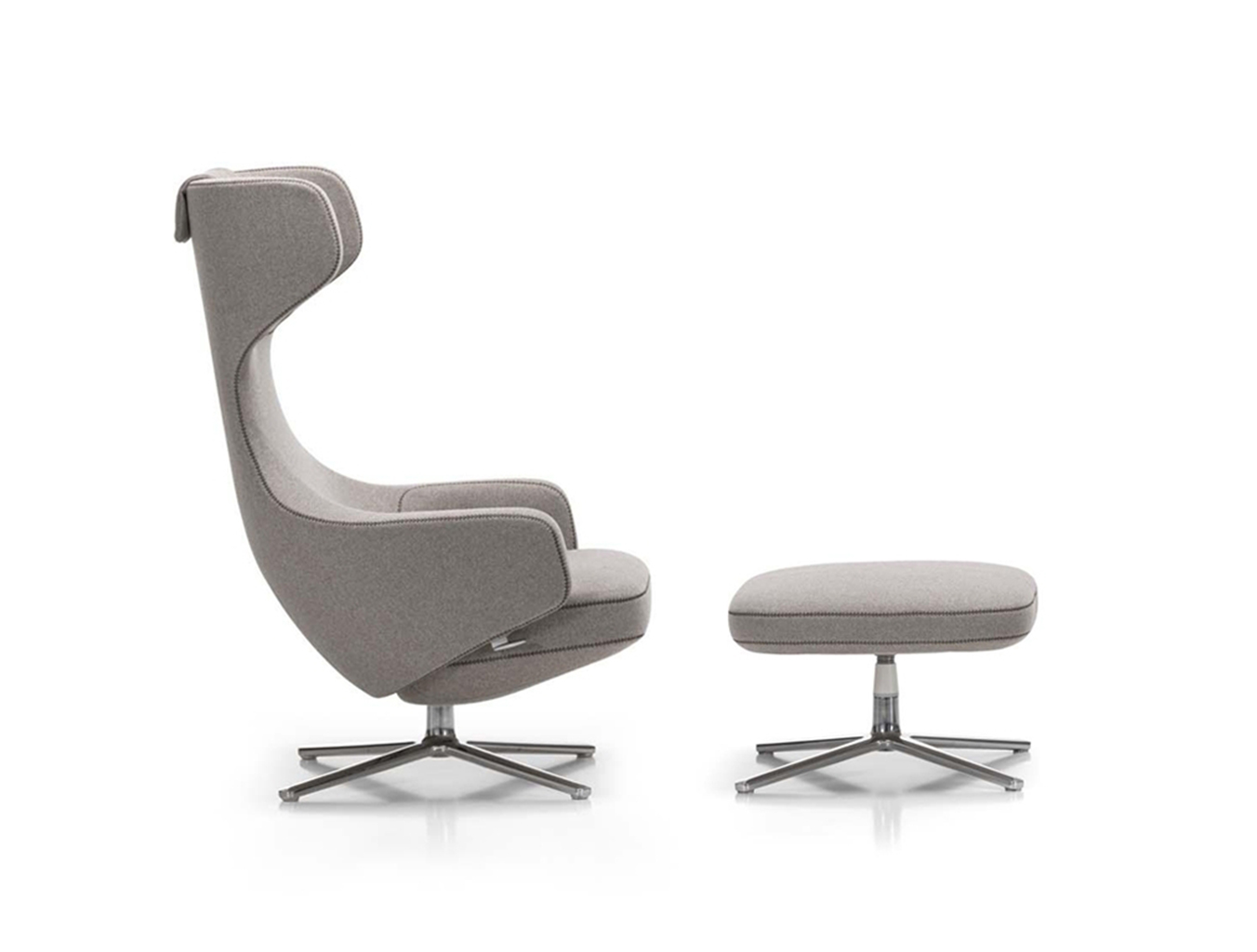 “grand repos lounge chair and ottoman(grand repos 休闲椅&脚踏)由设计大师Antonio Citterio所设计的独特的,绝无仅有的休闲椅系列,椅子的创作面临的挑战如同伊姆斯夫妇当初设计著名的伊姆斯休闲椅一样,但正因如此,才能成为绝世经典。grand repos系列休闲椅采用钢制铝合金脚架、聚氨酯海绵填充、高级布艺扪面,可随意调整坐姿和高度,也可以放平躺,配上舒适的羽毛衬垫,无论阅读或者休憩,都非常舒服,符合人体工学,高档舒适,是办公,会议的理想选择。意大利设计师和建筑师 Antonio Citterio赋予了这边椅子永恒的优雅气质与无与伦比的舒适,是当代设计的经典,无论用在办公、商业、家庭都是非常高贵大气的。”