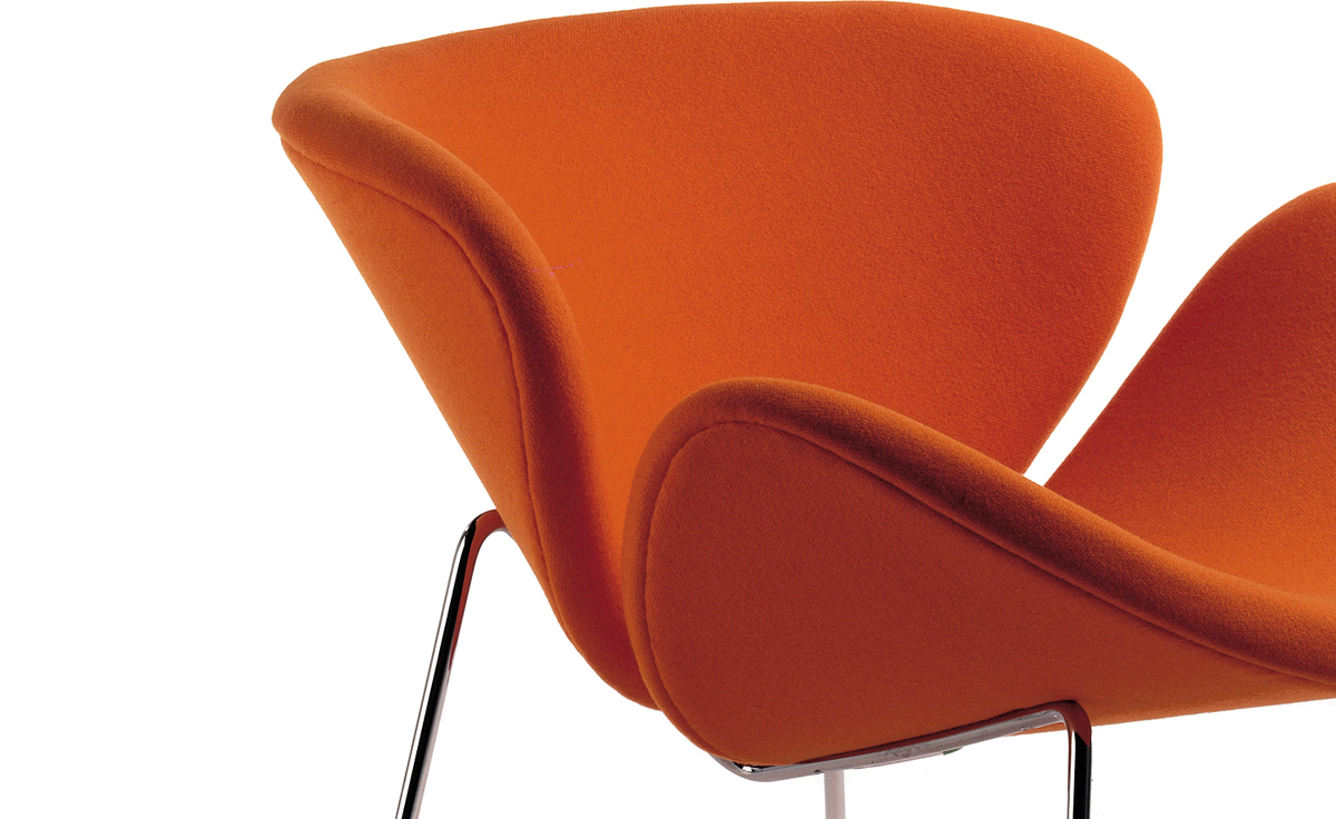Paulin Slice Chair (橙片椅)也可以称为橘瓣椅,是由著名设计师Pierre Paulin设计的,从桔瓣椅的设计就能看出Pierre Paulin是具有国际性视野和前瞻性的前卫设计师,桔瓣椅全手工制作,针线走得直、流畅、缝线美观、均匀且自然,线条优美。这个经典的设计经历过时间的洗涤看上去仍然象刚设计出来一样。有谁看见由2片简单的橙瓣组成的颜色鲜艳椅子而不心动呢?从不同的角度,橙色片展示了几个阶段的“卷起来”。事实上,椅子几乎从每个角度看都呈现出不一样的优雅。橙片椅布料可为PU,真皮,植绒,羊绒布等多种面料,脚架为电镀铁架,颜色可多选。可用于餐厅,咖啡厅,接待厅,电影院等候室,VIP休闲室等多种商业场所。