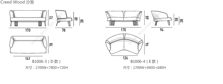 Creed 沙发 系列尺寸/示意图