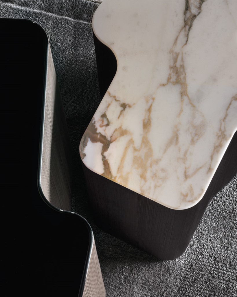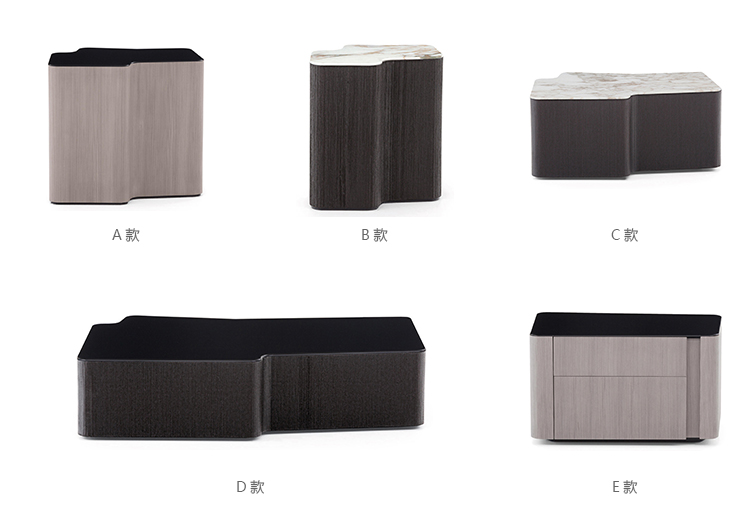 Lou边几组合拥有各种尺寸和饰面,呈现别具一格的家居风格。边几的做工极为繁琐,将现代技术与传统家具工艺完美结合在一起。内部结构为MDF材质,采用落叶松木胶合板饰面,然后在弯曲部分加以精心打磨。