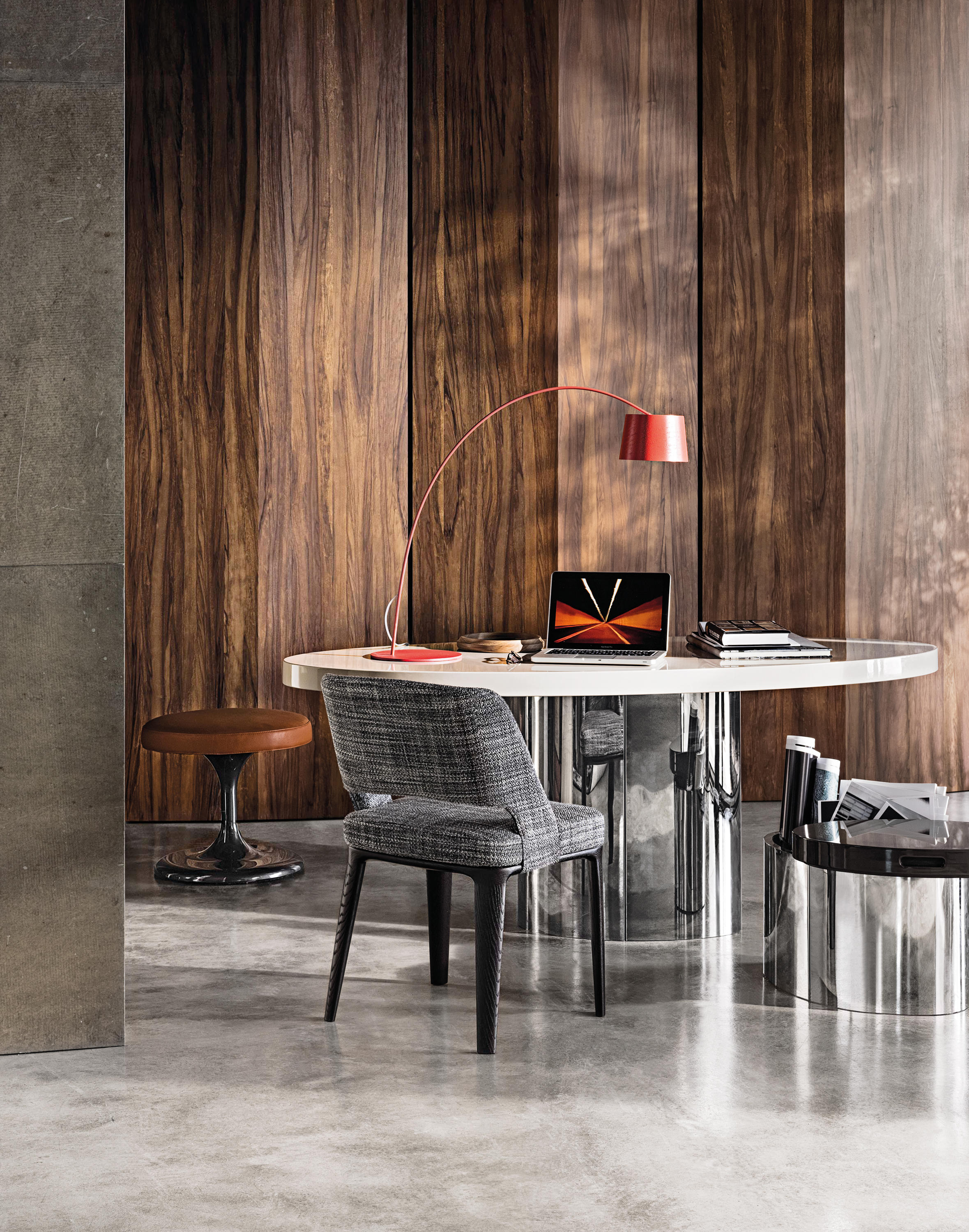 欧文斯座椅与家族中同名的扶手椅一样,将当代设计的精髓与传统的积淀融合在一起,以自身的技术诀窍为基础,体现出展望未来的特质。座椅除了有充满经典风情的Moka色白蜡木版本可供选择以外,还有令人眼花缭乱的设计方案,椅腿可以采用Pewter色漆面的铸铝材质,搭配Minotti Studio独家设计的色调。