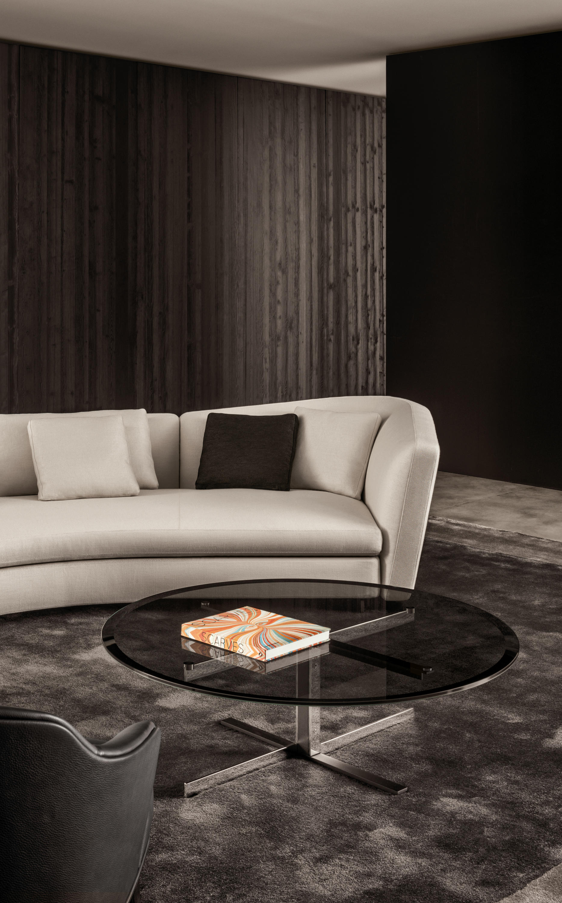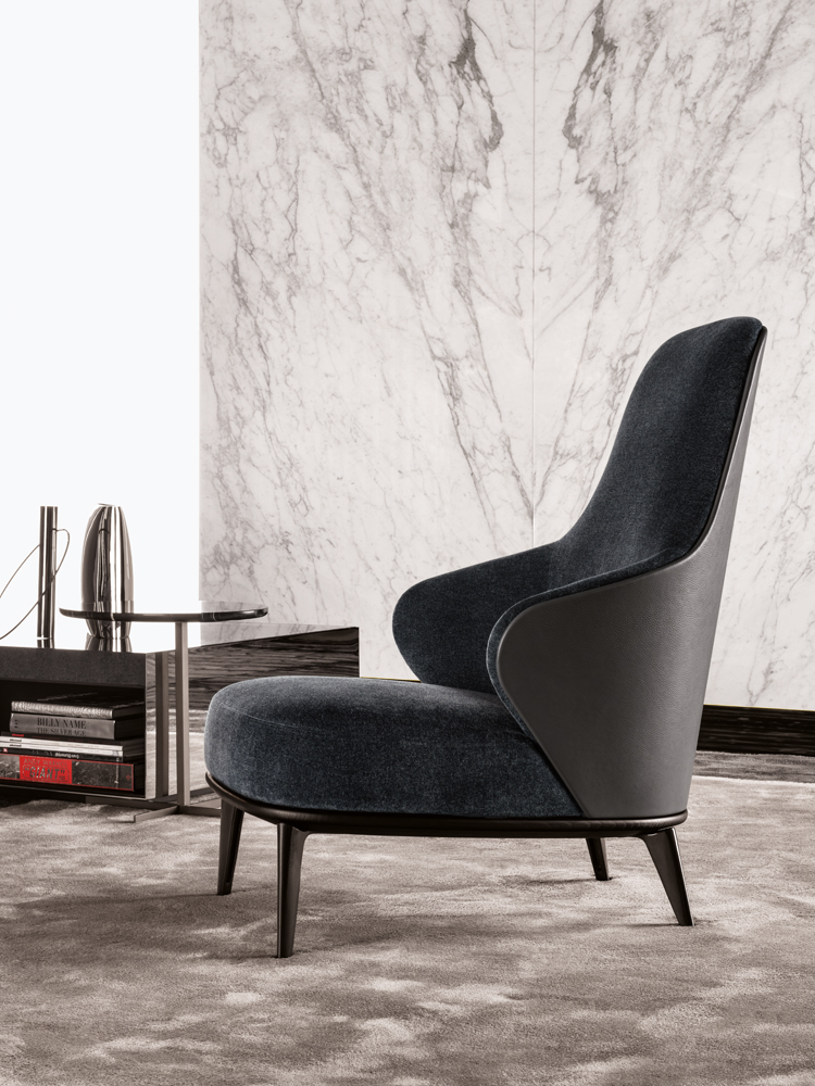 如果说Catlin边柜的设计崇尚简洁,那么材质的选择则旨在打造非凡的视觉和触觉效果。金属基座有着精致的十字形地面支撑腿,其中包括颇有趣味的组合:黑色压花搭配铬色或金色的抛光表面,打造出多种多样的风格。材料的搭配体现出非凡的优雅感,台面可以选择两种珍稀名贵的大理石,Arabescato Purple或Sahara Noir,两者都拥有抛光表面。