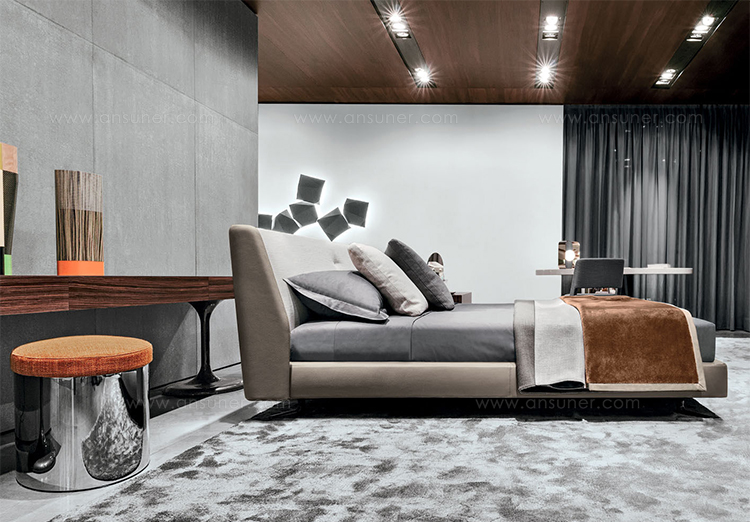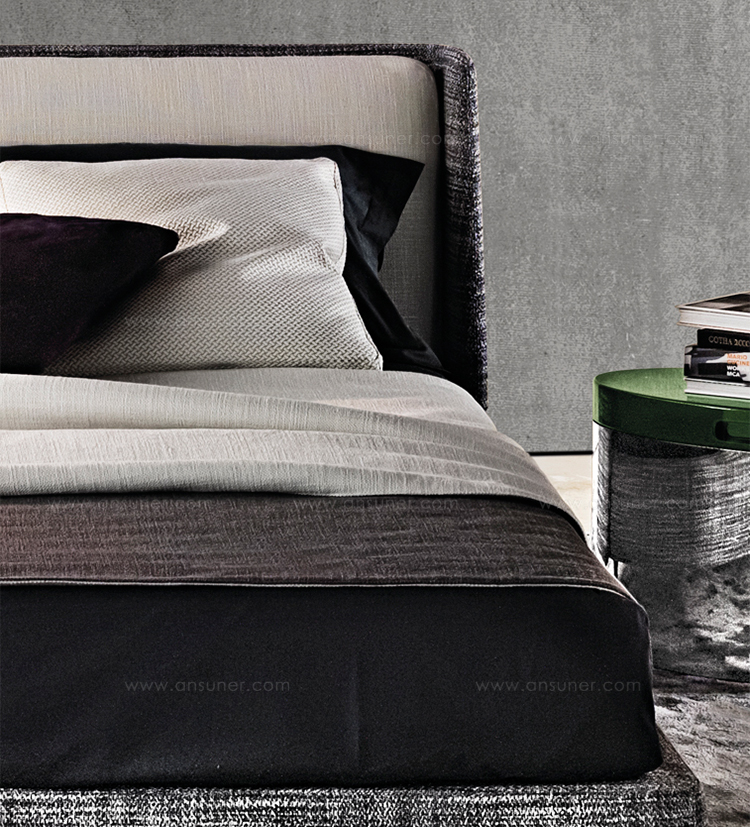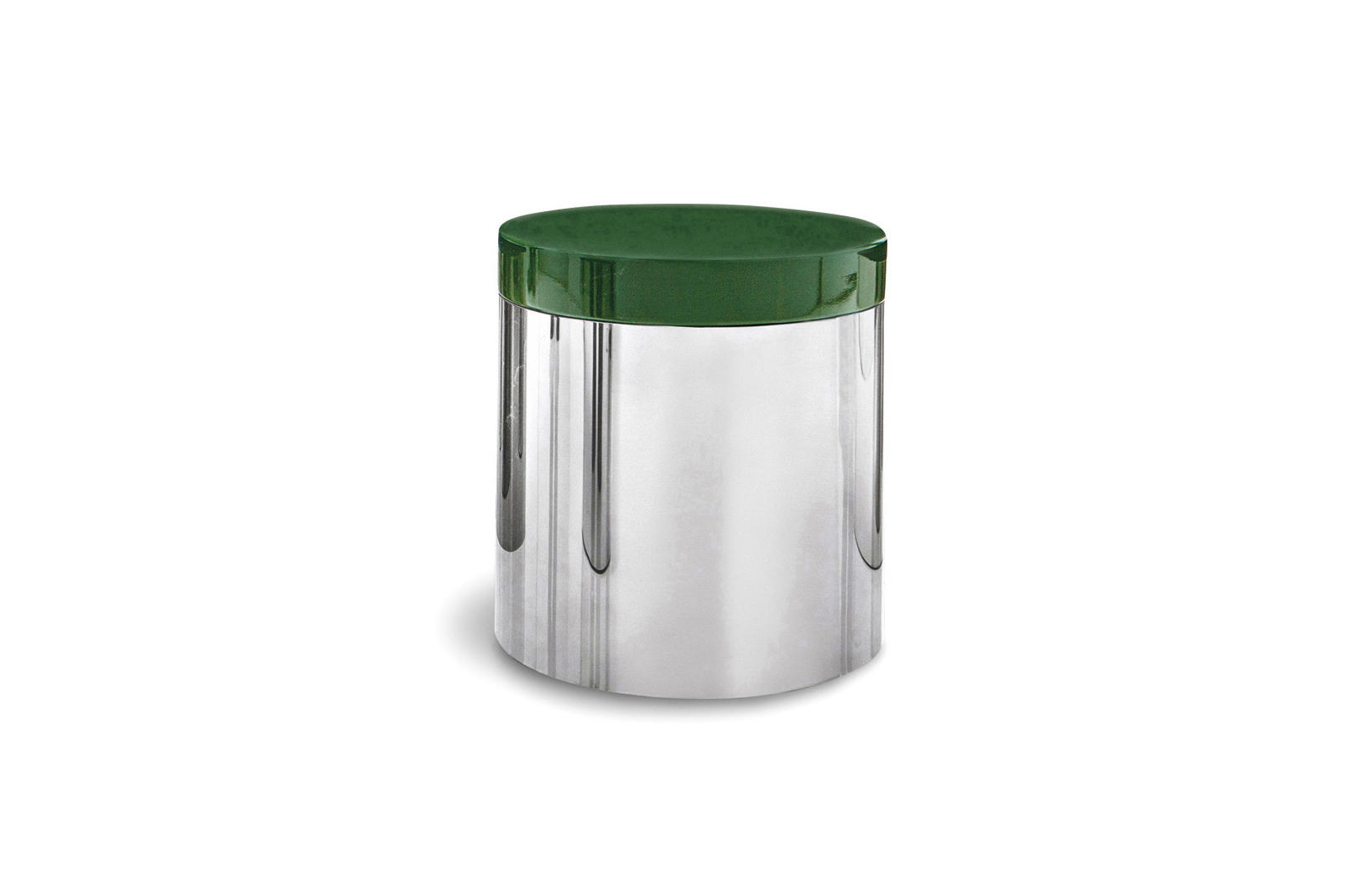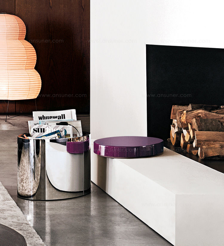 这款产品属于Raymond系列,但是又自成风格,可以作为边几也可以成为座椅,其内部还有一个极为实用的杂志收纳空间。收纳凳的底部为黑色皮革饰面,印有Minotti的logo。上方部件采用亮光漆面,颜色为白色、Sand色、花岗石色、绿色和紫色,搭配实用的椭圆形内嵌手柄,以此可轻松提起顶盖。休闲凳版本的上方部件则添加填充物,包覆Minotti独家系列中的布料和皮革。